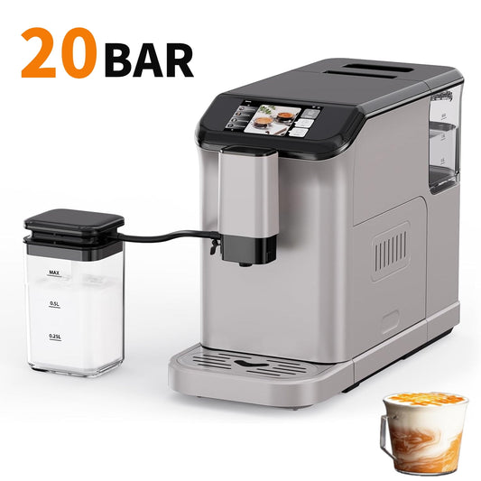 Garvee Auto Espresso Machine with Grinder, 20 Bar Coffee Maker W/TFT Touch Screen & 1.5L Removable Water Tank for Home Office, Silver Gold