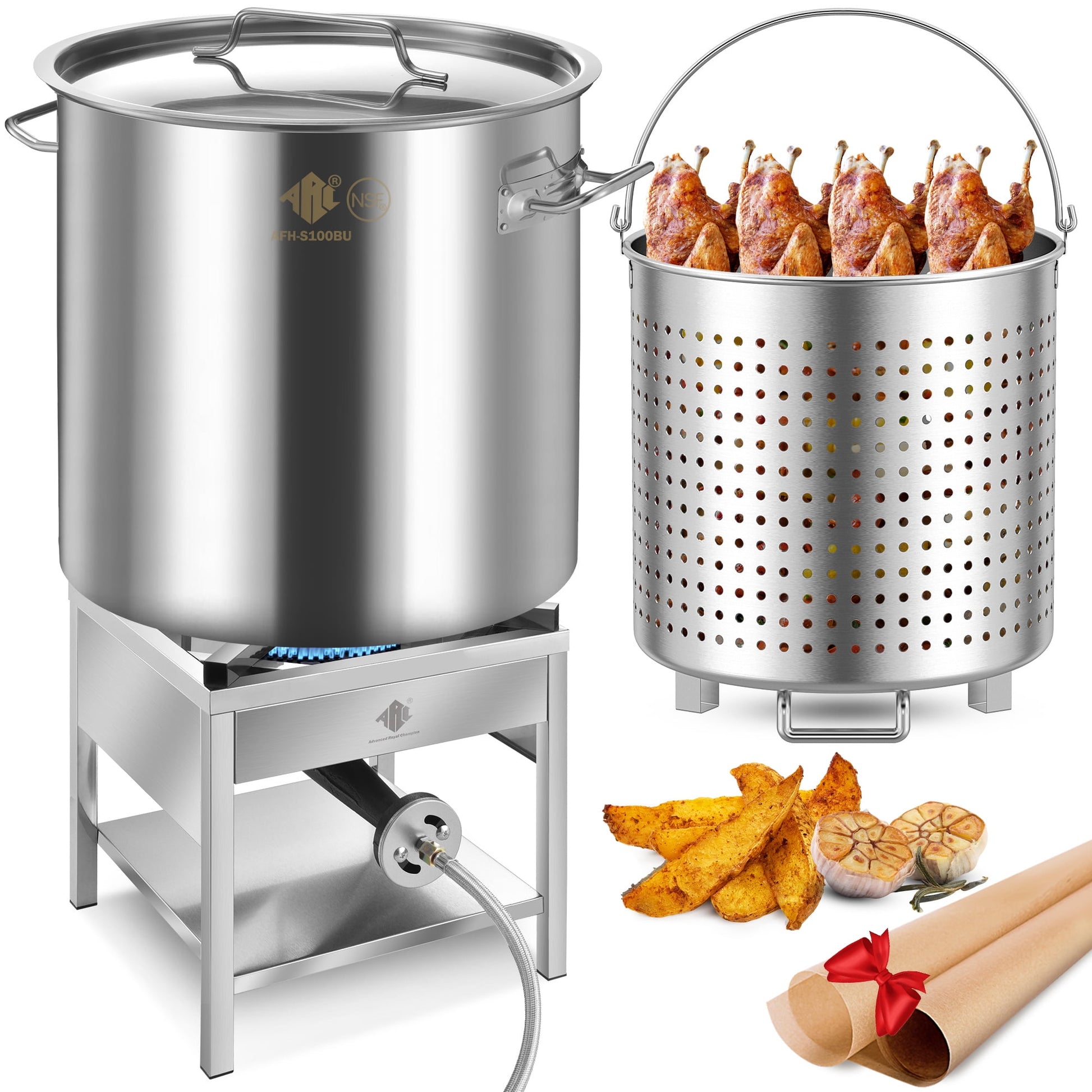 - HANDS-FREE & QUICK DRAIN: Upgraded handle on the basket design for hands-free draining and hassle-free lifting. this large seafood boiling pot can also transform into a turkey fryer