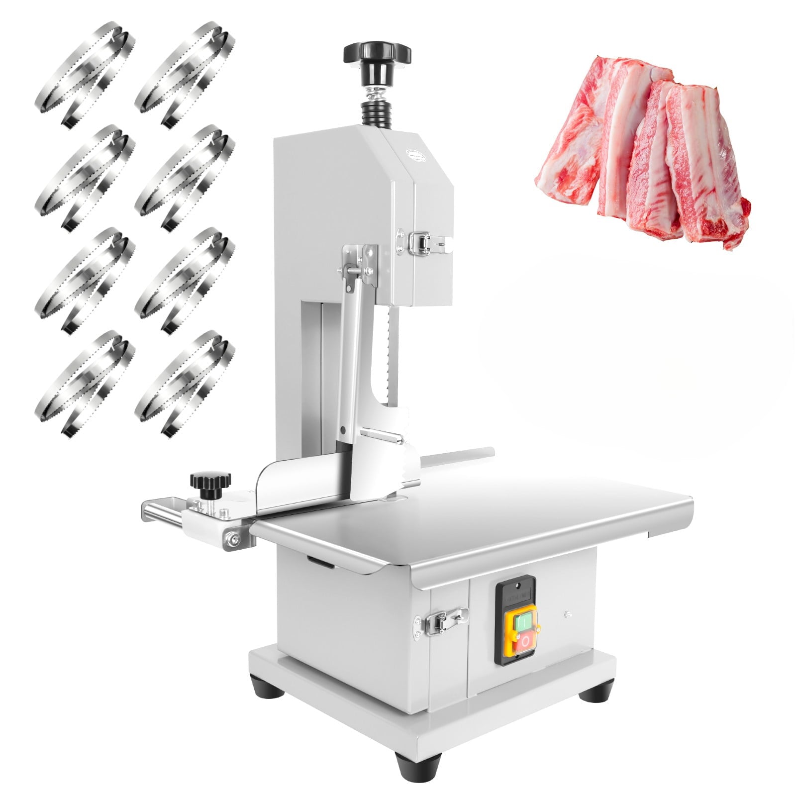- Dominate tough bones and frozen meats effortlessly with our industrial-grade bandsaw. Driven by a robust 1500W motor (110-120V/60Hz), it delivers relentless cutting power, processing 440-660 lbs per hour to dramatically slash your prep time. Built for longevity, its durable aluminum alloy and stainless steel construction resists rust and corrosion.