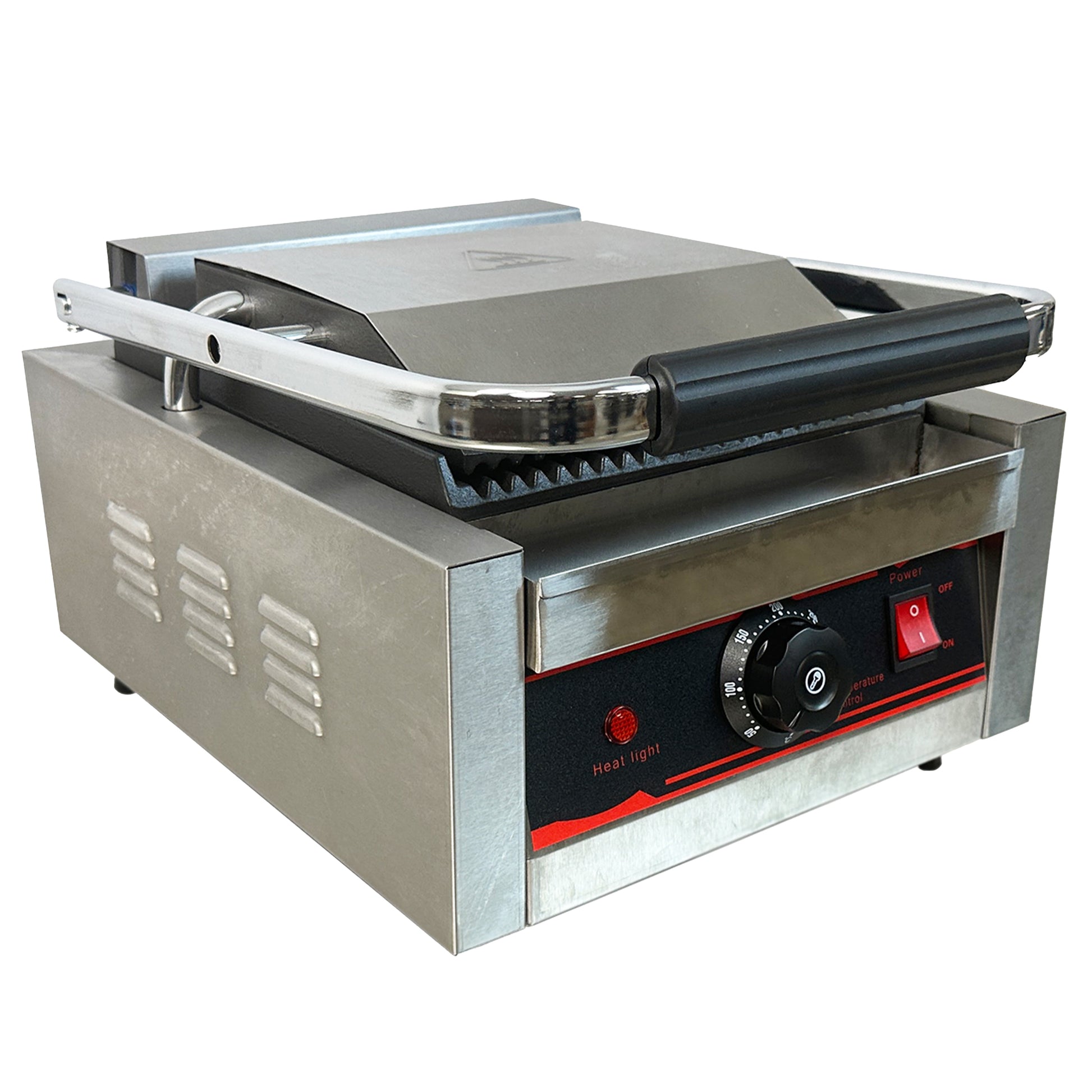 1800W Commercial Panini Sandwich Grill Grooved Plates Single 12 in. Width, 110V