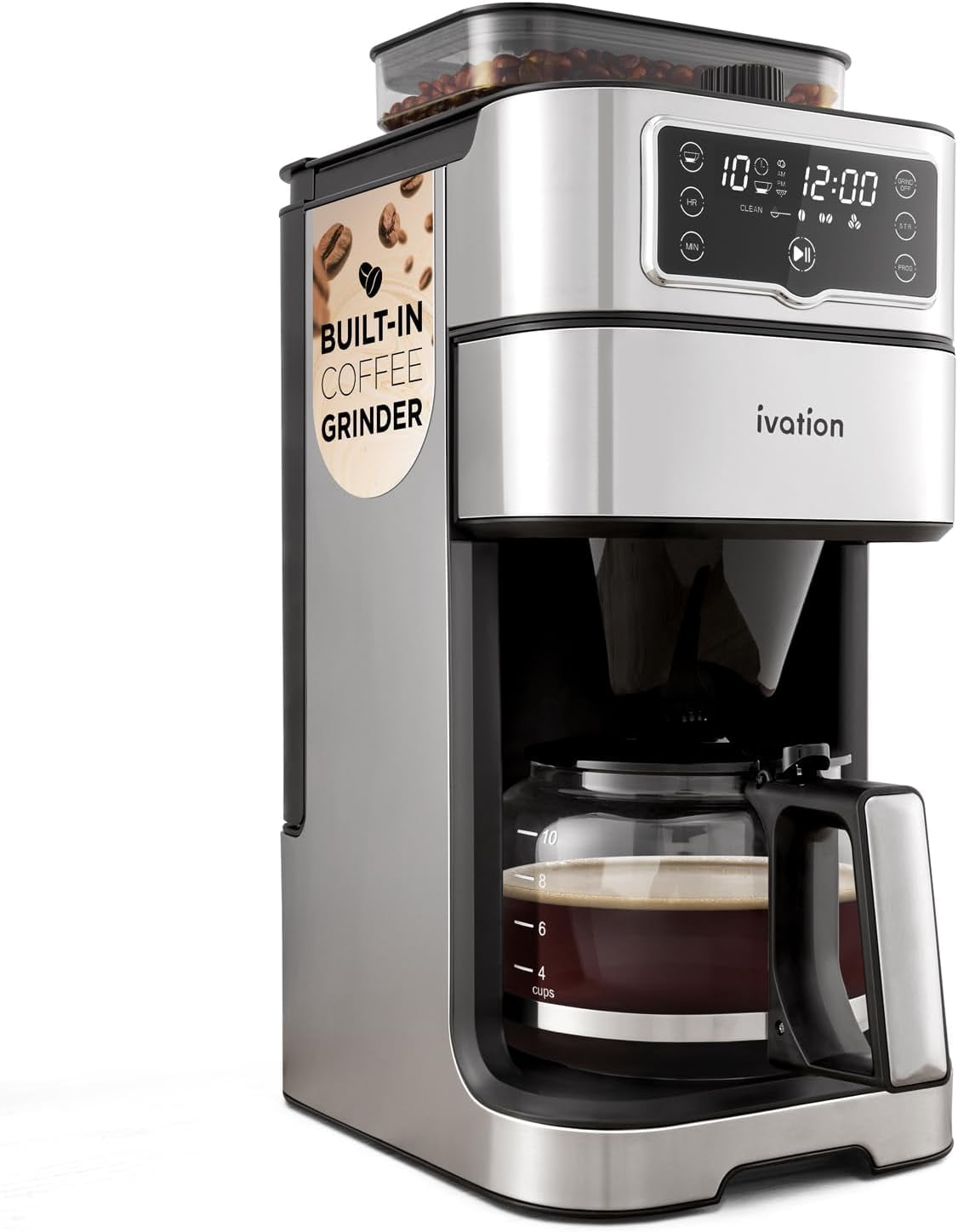 1. 2-in-1 Drip Coffee Maker & Grinder – Programmable Auto Brew & Timer - Warming Plate - 10 Cup - Reusable Filter Basket – 1.5L Water Tank – 1000W - Pause and Pour