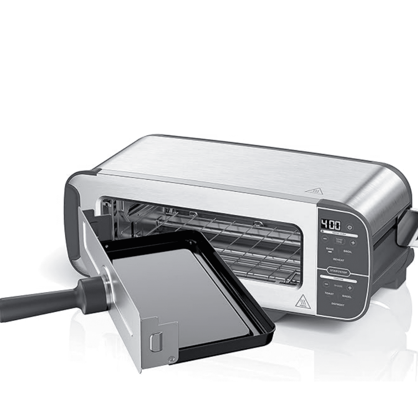 2-in-1 Flip Toaster, 2-Slice Capacity, Compact Toaster Oven, Snack Maker, Reheat, Defrost, 1500 Watts, Stainless Steel, 6 Functions
