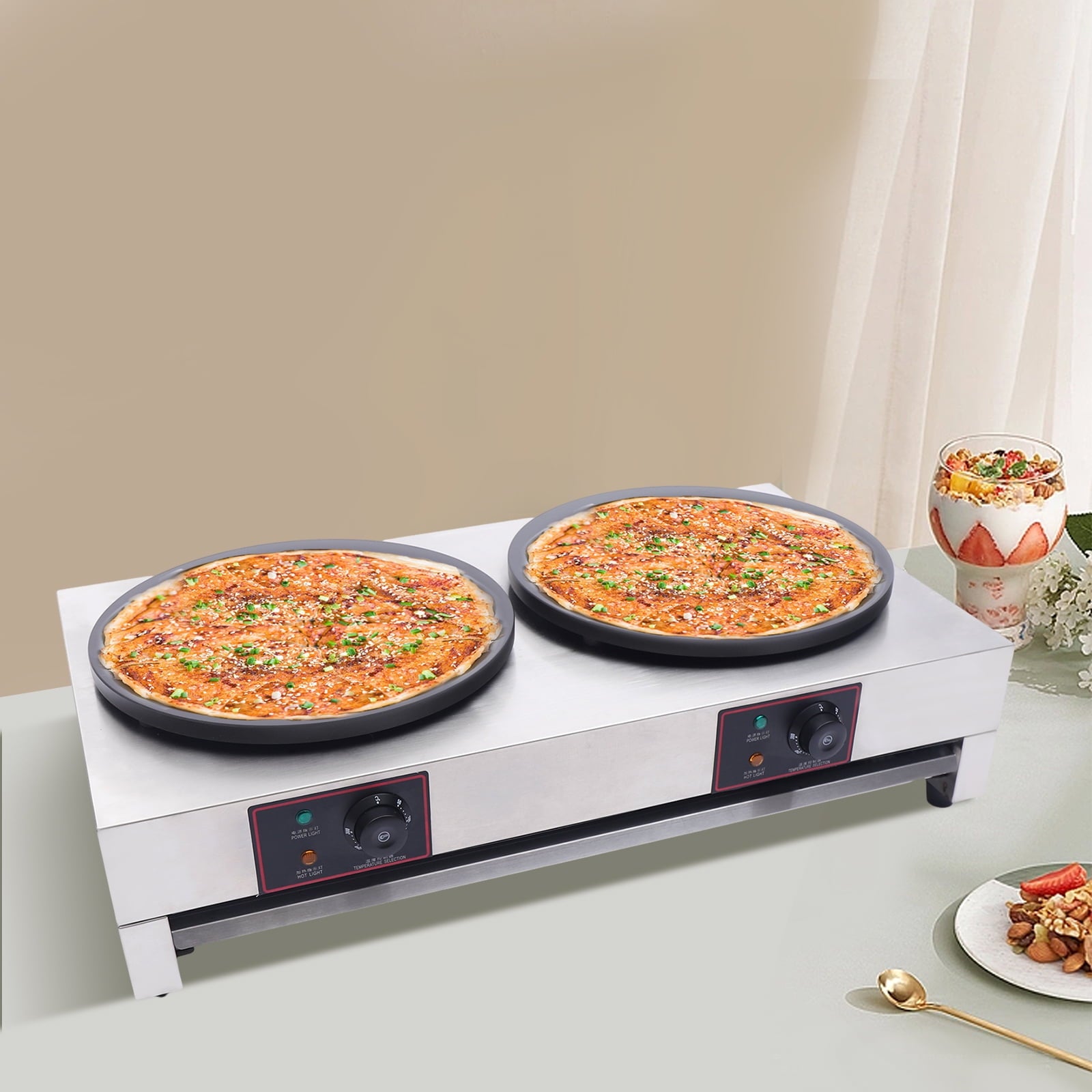 3400W Commercial Non-Stick Pancake Machine 2-Burner Crepe-Making Table Stove