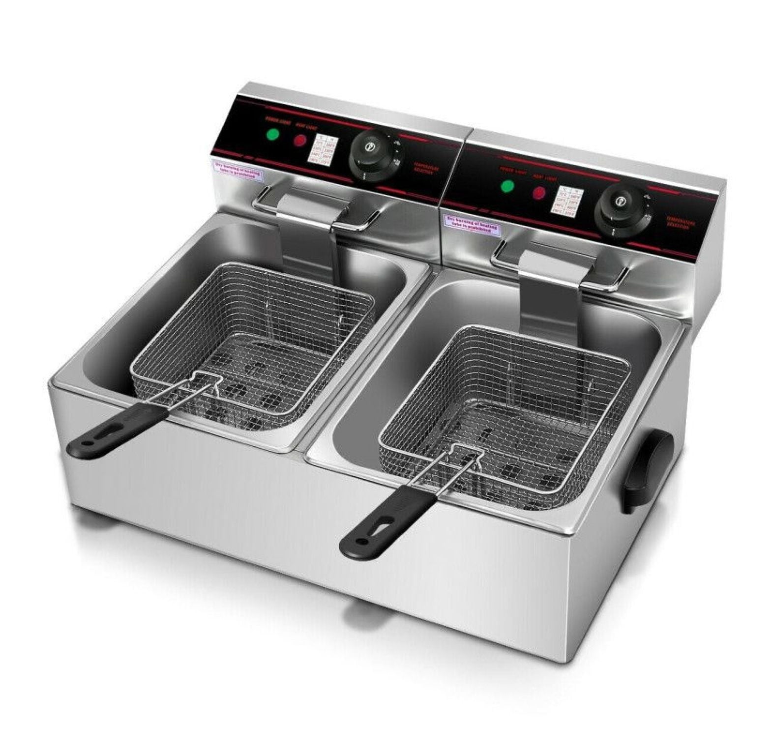 Specifications Name Double electric fryer Material Stainless steel Voltage supply 110 V/60 HZ Power 3400 W Temperature range 160 °F -375 °F Dimensions 21.4" x 17" x 12" / 543 x 425 x 295 mm Capacity 6 L x 2 Net weight 22 lbs / 10 Kg Overview -Brand new and high quality-Heavy-duty stainless-steel for commercial and home applications-Stainless-steel construction for electric 2-tank fryer-Electrical safety isolation switch: ABS control dial-Tilt-back and removable electrical head can be assembled-Temperature range: 60°C - 200°C-Thermostat control and indicator light-Two temperature controllers, controls tanks separately-Immersion type stainless-steel tubular element-Double tank with 2 free stainless-Steel fryer baskets wand plastic handles for preventing scald-Free stainless-steel lid for preventing the boiling oil splashing-Residue plates for filtering out the dregs-Comes with reset protecting button for overheating-Simply press the reset button the next time you use it-Non-slip feet-Suitable for a variety of cooking-Equipped with multiple safe features and designed to be easily broken-down-Easy to operate and high performance, excellent efficiency