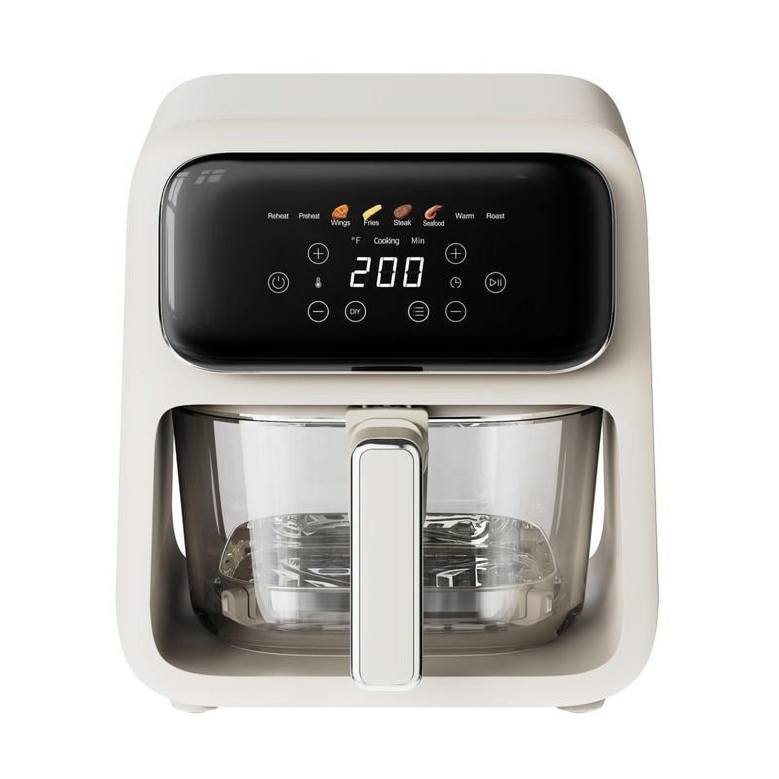 4.2QT Ivory 5mm Tempered Glass Air Fryer for Home Dining: Non-Toxic, 400°F Air Crisp Tech, Dishwasher Safe, Multifunctional Cooker