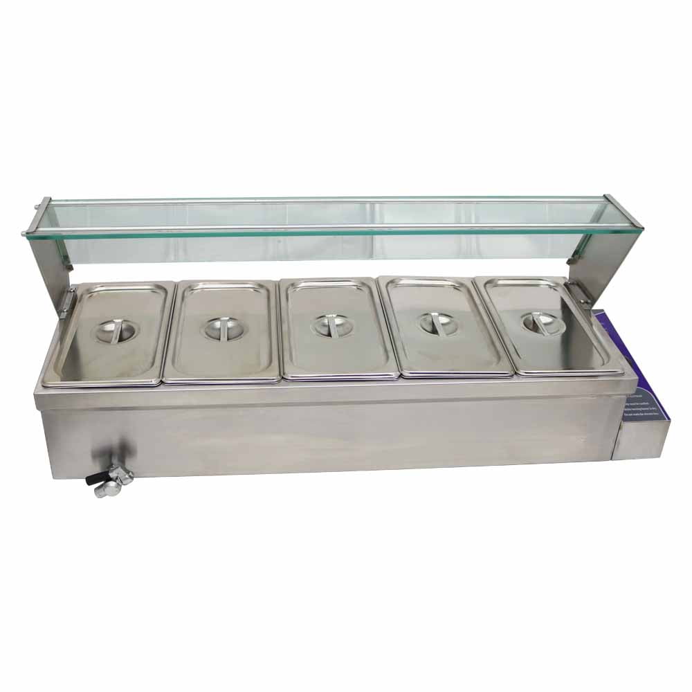 5*1/3Pans Electric Heating Food Warmer Stainless Steel Detachable Glass Frame 110V 1.5KW