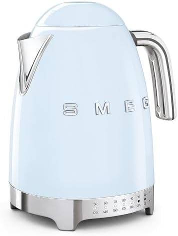 Retro Style with Modern Technology: Combines iconic 1950s aesthetic with advanced variable temperature control. Precision Heating: Adjustable temperature settings from 122°F to 212°F for optimal brewing of delicate teas, robust coffees, and more. High-Powered Performance: 1400W heating element boils water quickly and efficiently. 7-Cup Capacity: Ideal for families, entertaining guests, or enjoying multiple servings. Durable Stainless Steel Design: Premium quality build for long-lasting use and easy cleaning. Compact Countertop Fit: Dimensions of 8" x 9" x 10" make it a perfect addition to any kitchen space. Thoughtful Design Features: Soft open lid for steam release, anti-drip spout, and removable scale for pure, clean water. Hidden Cord Wrap: Neatly store the cable underneath the base for a clutter-free countertop. Keep Warm Function: Maintains your selected temperature for up to 20 minutes. Safety Features: Anti-slip feet and a concealed heating element reduce the risk of accidents and limescale buildup.