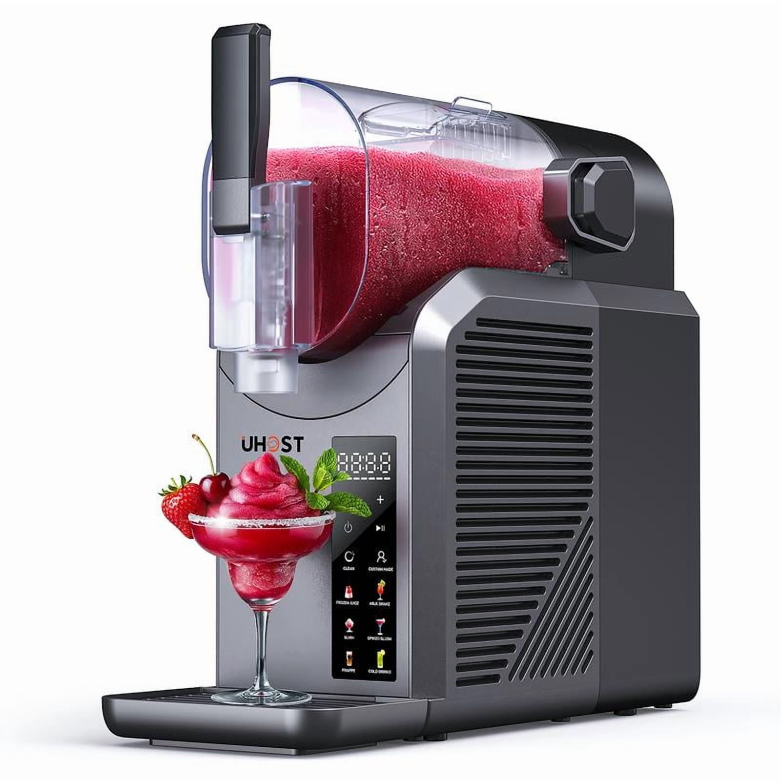 Enjoy slushie moments with your family anytime, anywhere! No Ice Needed, No Hassles! 15-30 Minute Fast Freezing The Uhost slushie machine simplifies making frozen drinks at home. It eliminates the need for ice, ensuring your beverage stays pure. Create smoothies, milkshakes, and more with just one ingredient. 7 Preset Programs for Versatility Easily switch between 7 pre-programmed modes: Milkshakes, Frozen Juice, Slush, Spiked Slushies, Frappés, Cold Drinks, and Custom. Each mode offers smooth, frosty, and delicious results. The detachable design and dishwasher-safe parts make cleaning a breeze. Perfect for busy households and frequent use. Easy to Operate Easy to Disassemble Easy to lnstall More capacity, more joy - designed for the whole family! With a spacious 72 Oz (2.1L) capacity, this frozen drink machine serves multiple drinks at once—an excellent choice for families, BBQs, and summer parties. The 4-hour auto shut-off feature prevents overuse and overheating, allowing for worry-free enjoyment. Whisper-Quiet & Hassle-Free Cleaning Operating at approximately 40dB, this Slushie Maker lets you create frozen drinks without disrupting conversations or relaxation time. Plus, the detachable design and dishwasher-safe parts simplify cleaning—ideal for busy households and frequent use. Perfect for all sorts of occasions Making Requirements The sugar content should exceed 5%, and the alcohol content should be between 2.8% and 16% for best results.Always stir the mixture thoroughly before pouring it into the machine.Need help? Contact our support team—we’re here to provide a prompt and satisfactory solution.