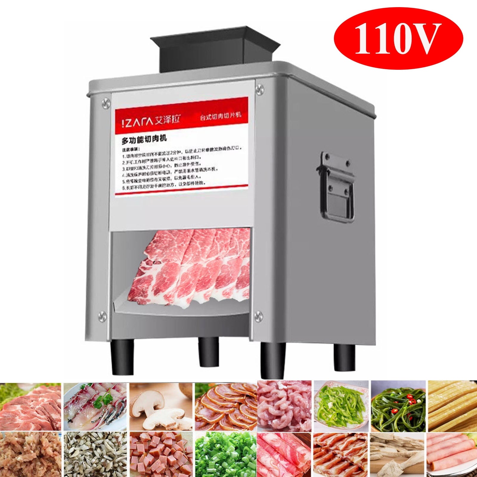 - Multi-functional meat cutting machine: The first time cut into meat slice, second time cut into shredded meat, third time cut into cubes. It can siut any meat which is not with BONES and FREEZE, such as chicken, fish, beef, mutton and so on.