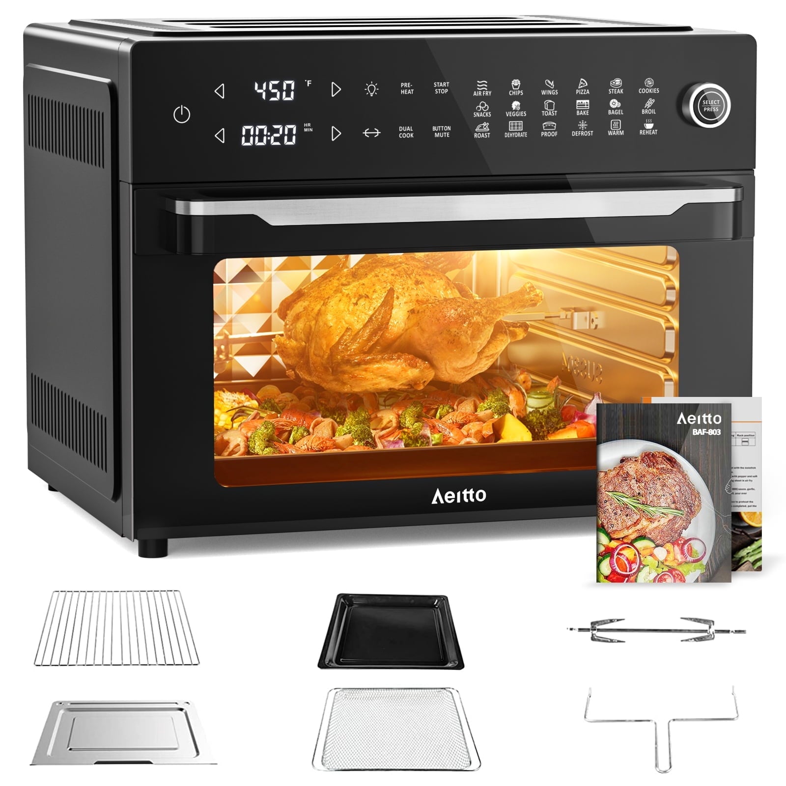 Aeitto PRO 32-Quart Air Fryer Oven, Toaster Combo with Rotisserie, Dehydrator, 19-In-1 Digital, Fits 13" Pizza, 1800W