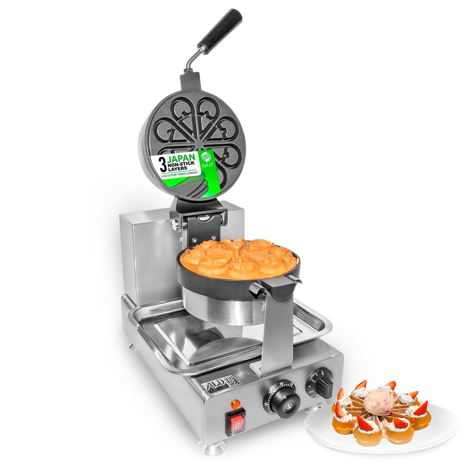 ALDKitchen Rotating Waffle Maker | Flower Petals Shape Waffles | Belgian Waffle Iron | Stainless Steel | 110V