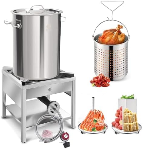 IMPORTANT: Please note Stockpot and Burner will be sent in TWO separate packages. If there were any lost, damage or any problem caused during the shipping. Please contact us! PREMIUM STAINLESS STEEL: ARC turkey fryer pot , accessories, propane burner frame, and hose are all made of stainless steel for long-term use and durability. The burner has 200,000 BTU output, good enough to handle variant outdoor cooking needs such crawfish boiling, turkey frying, steaming. SAFER REGULATOR HOSE - Steel braided, adjustable from -20 PSI for pinpoint heat adjustment, the burner's propane regulator is the reliable connection you need to ensure a leak-free, fully controlled burner experience. 32QT VERSATILE COOKING POT: The seafood boil pot is a great addition to your cooking equipment. Consists of 7 parts: pot, lid, strainer basket, lift hook, steamer rack, steamer tube and a divider. Make your favorite, traditional and delicious homemade recipe. STEAMER RACK & TUBE: When steaming seafood or tamale, the steam can be transported upward through the middle steamer tube, transfer the heat to the upper food, which will make the food evenly heated in the stockpot. DIVIDER: If you're cooking more than one type of food at once, use the divider, it can help you to steam 3 different foods separately at the same time. Great for tamales, seafood steamer vegetable steamer or any food you want to steam separately.