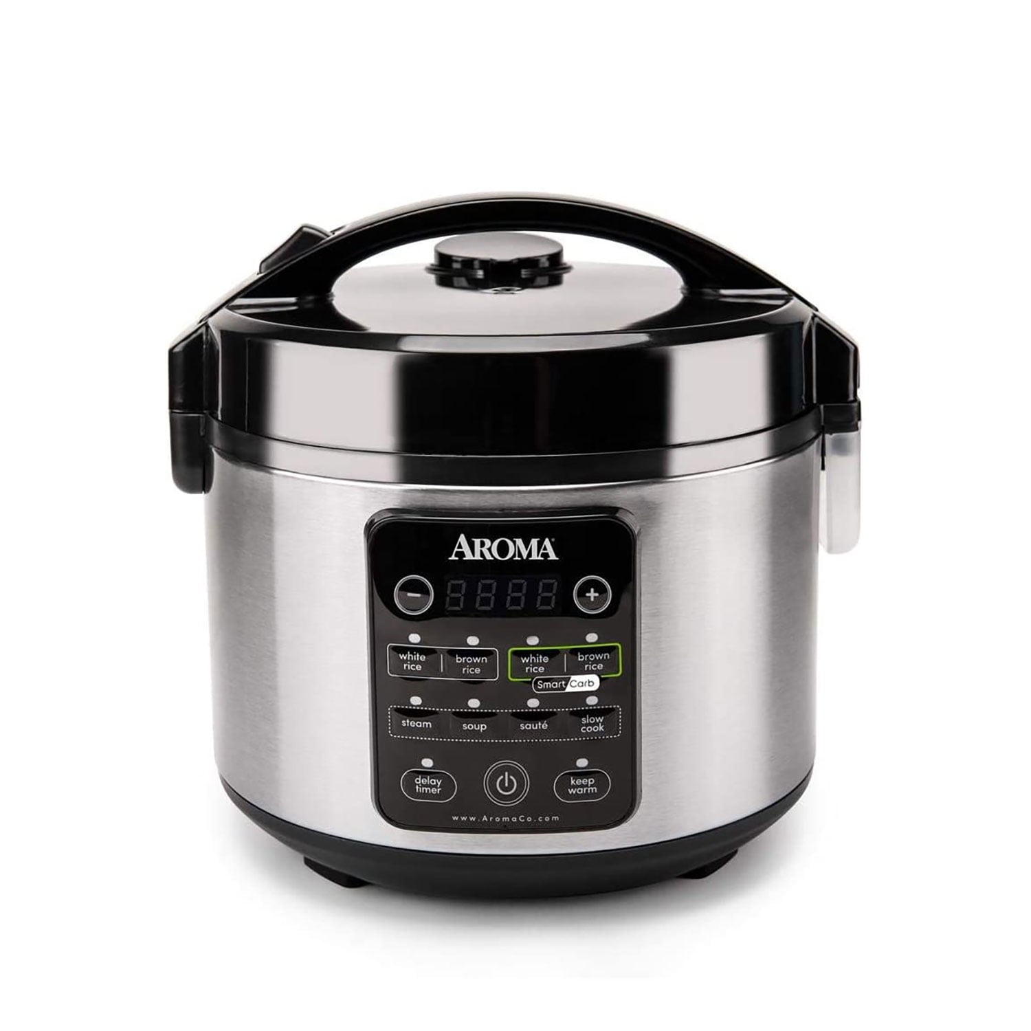 Love rice? It's time to elevate your rice to the next level with Aroma 12-Cup Cooked SmartCarb Rice Cooker & Multicooker. Our latest innovation, the SmartCarb function, reduces up to 25% of carbohydrates in rice by using a stainless steel carb-reducing pot and a specially designed program. Rice is steamed to perfection while starchy water drains below and reduces carbohydrates in rice. With 8 preset one-touch functions, this cooker can prepare up to 12 cups of any variety of rice and whole grains, steam fish and vegetables, sauté meats, and make hearty soups and your favorite slow cook recipes. And when the cooking is done, the inner cooking pot and all accessories remove for easy cleanup in the dishwasher. Now make a smart choice with Aroma 12-Cup Cooked SmartCarb Rice Cooker & Multicooker.