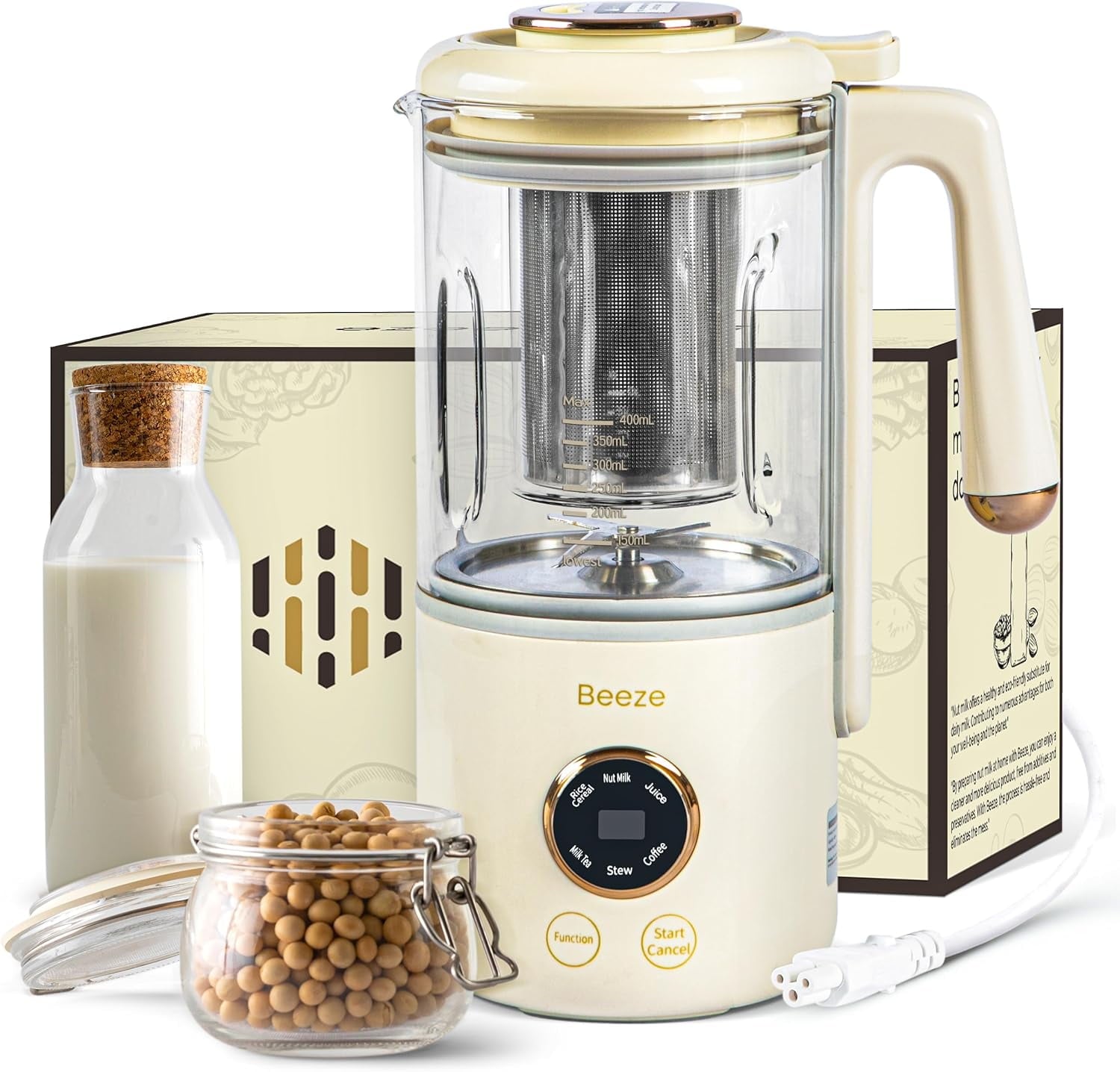 - BUILT-IN STRAINER - BEEZE compact soymilk machine maker features a specially designed built-in strainer, optimizing space. Stored inside the stew pot, removing the hassle of a misplaced strainer. Making your plant milk maker machine a seamless, stylish, and space-efficient experience.
