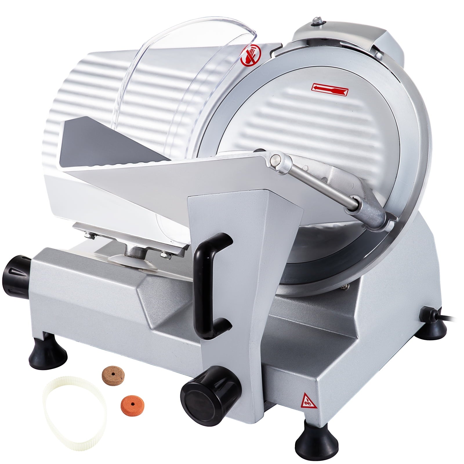 - 10-Inch Blade: Our meat slicer comes with an improved 10-inch wide 45# carbon steel blade. Use the built-in whetstone to keep your blades sharp and try working with a variety of food textures, such as frozen meats, cheeses, raw meats, cooked meats, ham, and bread.