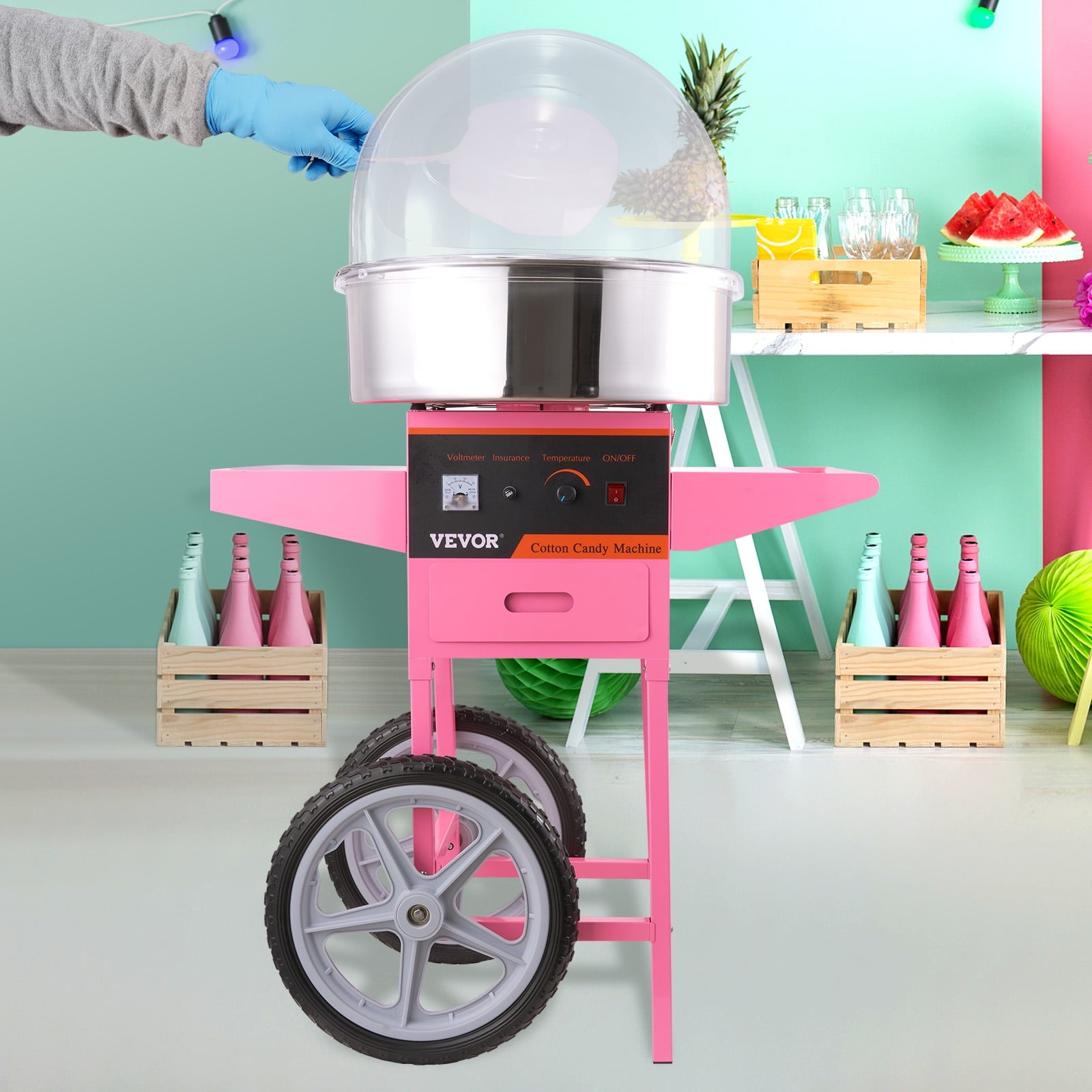 - Work with Any Candy You Like: This cotton machine allows you to use the traditional flossing sugars, milk sugars, fruit cubes, or any of your favorite hard candies to make delicious cotton candies. Large wheels and sturdy handle facilitate movement, and it is perfect for carnivals, festivals, birthday parties, and sports events.