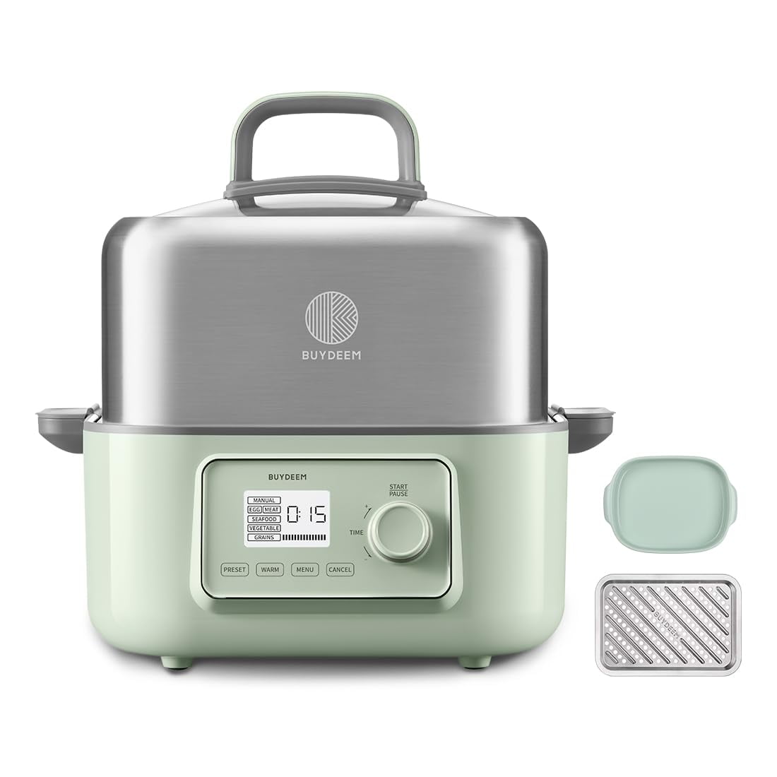 BUYDEEM G67US Electric Food Steamer for Cooking, 1 Tire Stainless Steel Steamer with Manual Mode, 1500W, 7 Quart, Green