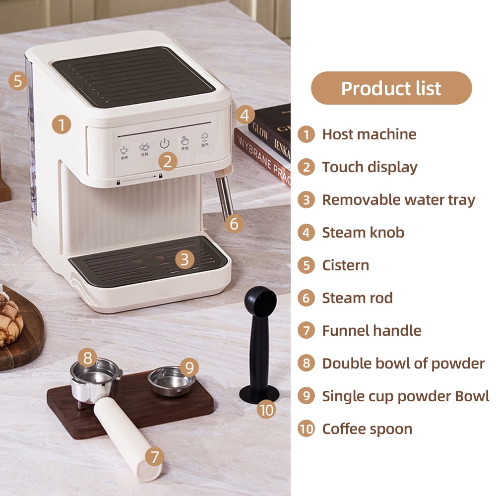 - Adjustable SteamKitchen coffee machine built-in single-hole universal steam wand. 3 levels adjustable, easy to control the density of milk foam. Convenient for you to make DIY Latte Art.