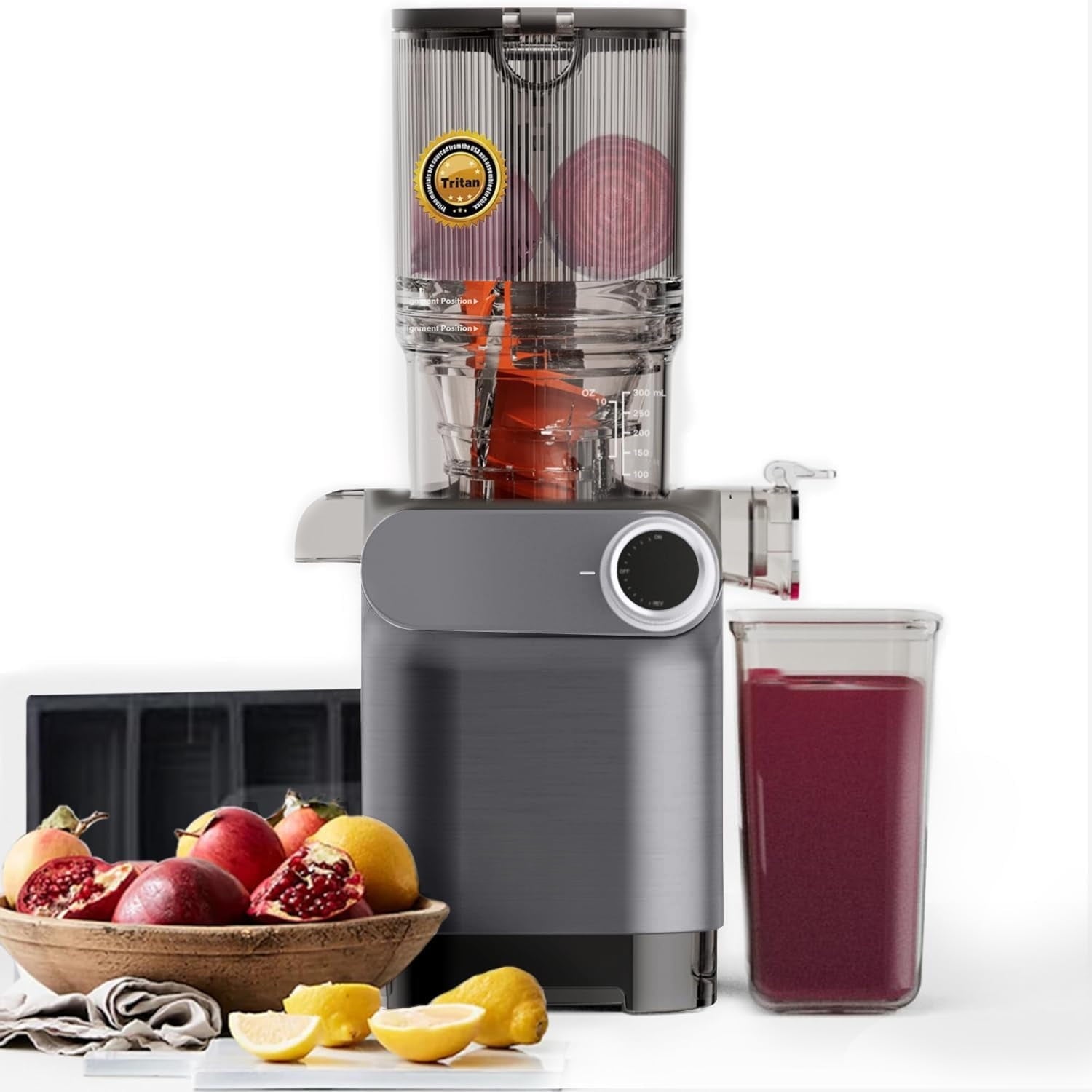 Cold Press Juicer, 200W Slow Masticating Juicer 4.3" Large Feed Chute Fit Whole Fruits Vegetables | Heavy Duty Auger | BPA Free | Easy to Clean (Gray)