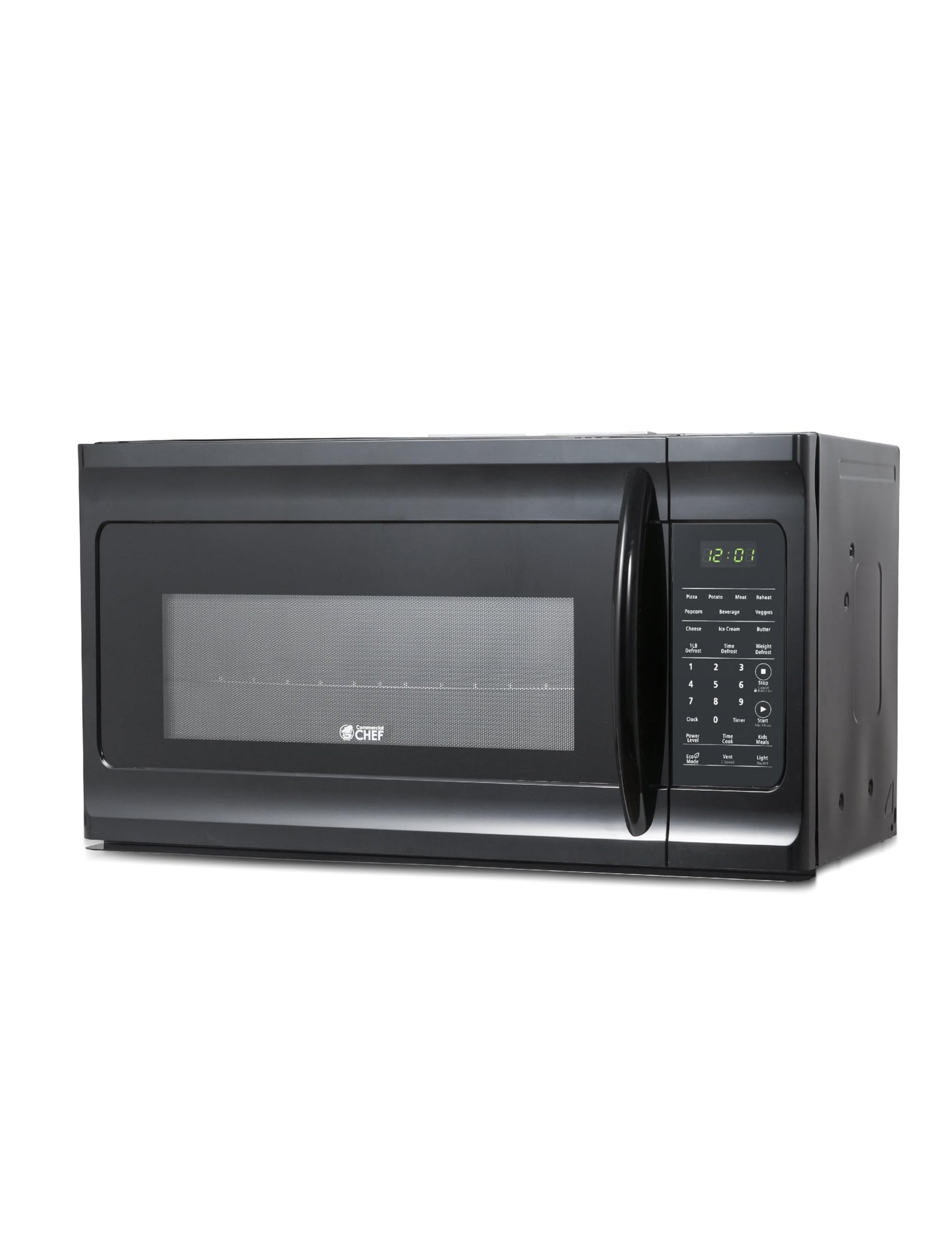 Commercial Chef 1.7 Cu. Ft. Over-The-Range Microwave Oven, 1000 Watt Microwave with 10 Power Levels, 300 CFM Hidden Vent Hood Fan, Touch Controls, LED Display, 10 Preset Options, CHMR17GB, Black