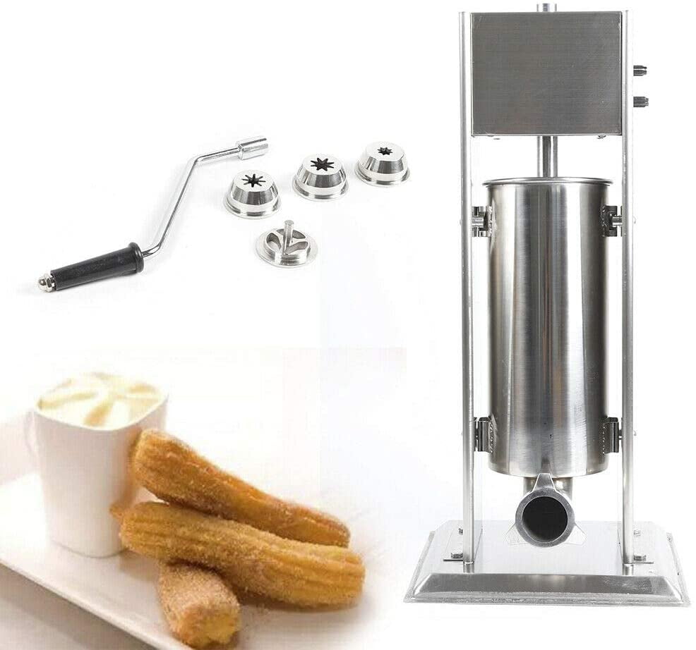 Commercial Churros Maker, 5L Stainless Steel Manual Spanish Churros Donuts Making Machine Vertical Churro Machine with 4 Nozzles for Home Restaurants Bakeries Cafeterias