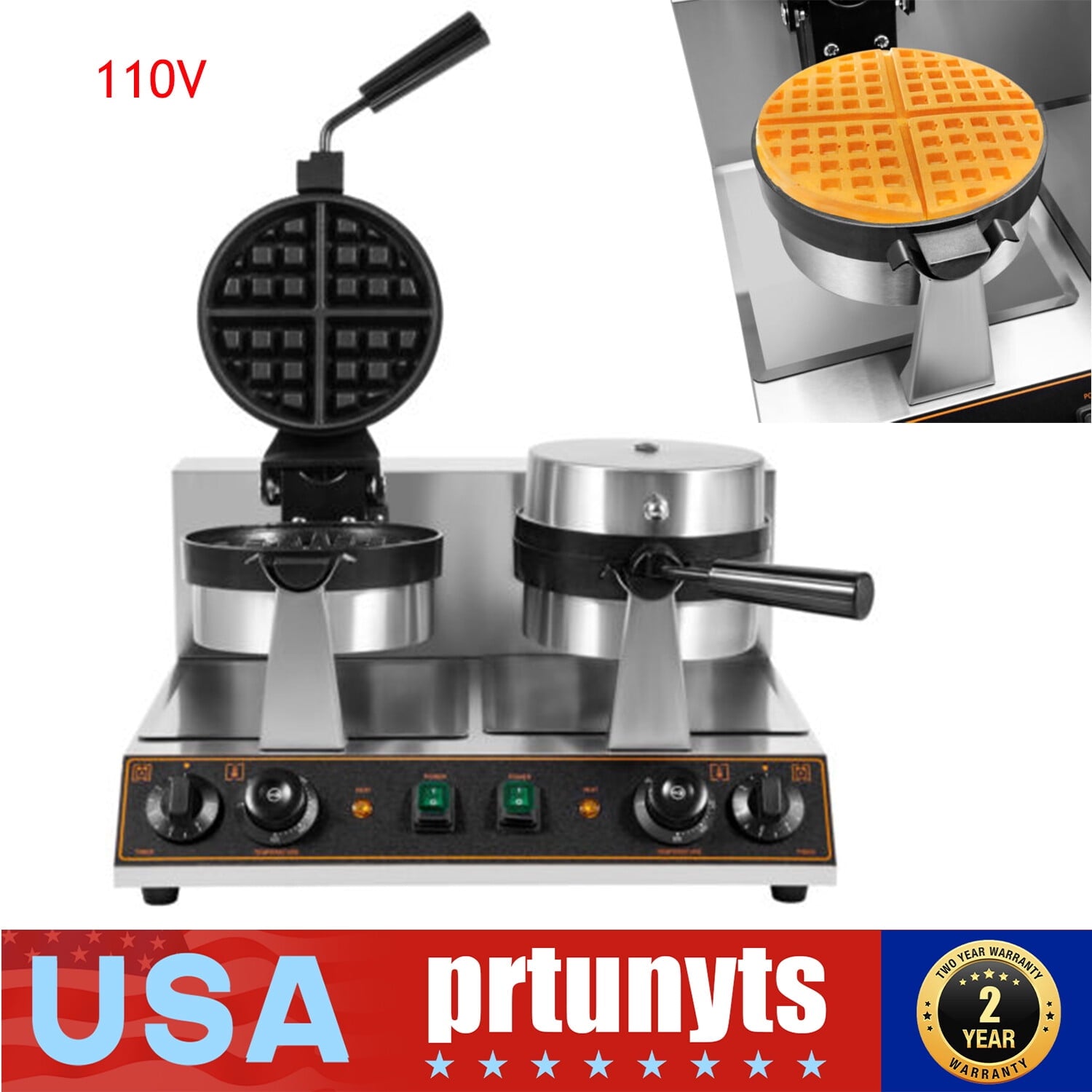Commercial Dual Head Rotating Non-Stick Breakfast 7in Round Belgian Waffle Maker