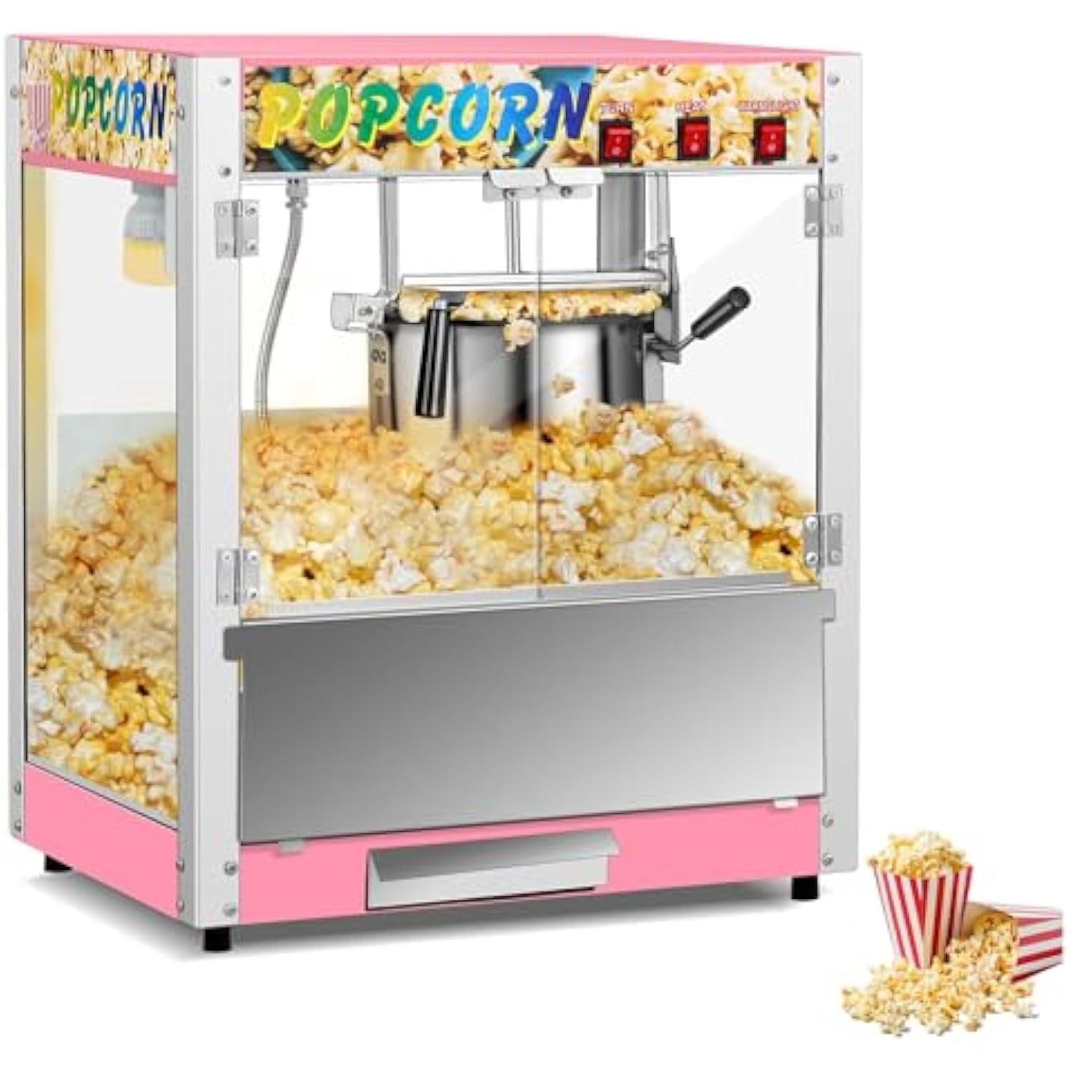 Commercial Popcorn Machine, 8 Oz Kettle, 850 W Countertop Popcorn Maker for 48 Cups per Batch, Popcorn Popper with 3-Switch Control Steel Frame Tempered Acrylic Doors