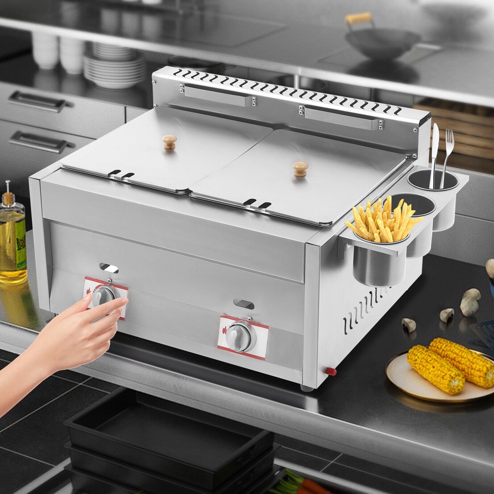 Countertop Gas Fryer, Commercial Deep Fryer 2 Basket Propane LPG Stainless Steel Frying Machine
