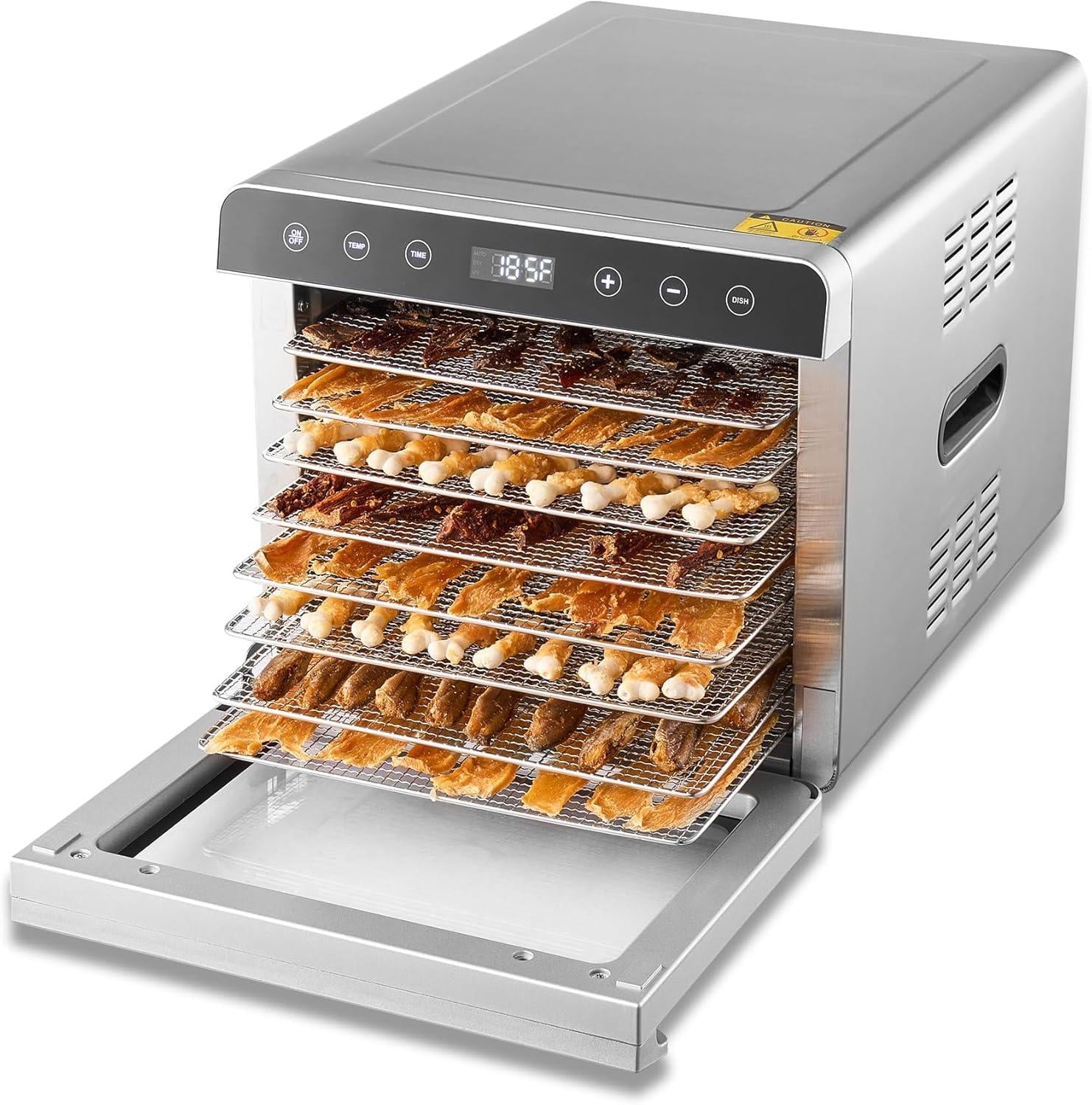 DALLE Multi-Function Food Dehydrator, UV Function 8 Trays Stainless Steel Dehydrator for Jerky, Pet Treats, Meat, Fruits, Herb and More, 185℉ Temperature Adjustable with 24H Timer