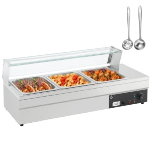 - 【Versatile Serving Options】With three generous 12-quart food pans—each measuring 10.4" x 12.8" x 5.9"—this electric steam table allows users to serve multiple dishes simultaneously, making it an ideal solution for catering events and buffets. You can keep a variety of dishes warm, from steamed vegetables to sizzling bacon, ensuring that your guests are always satisfied with piping hot food options.