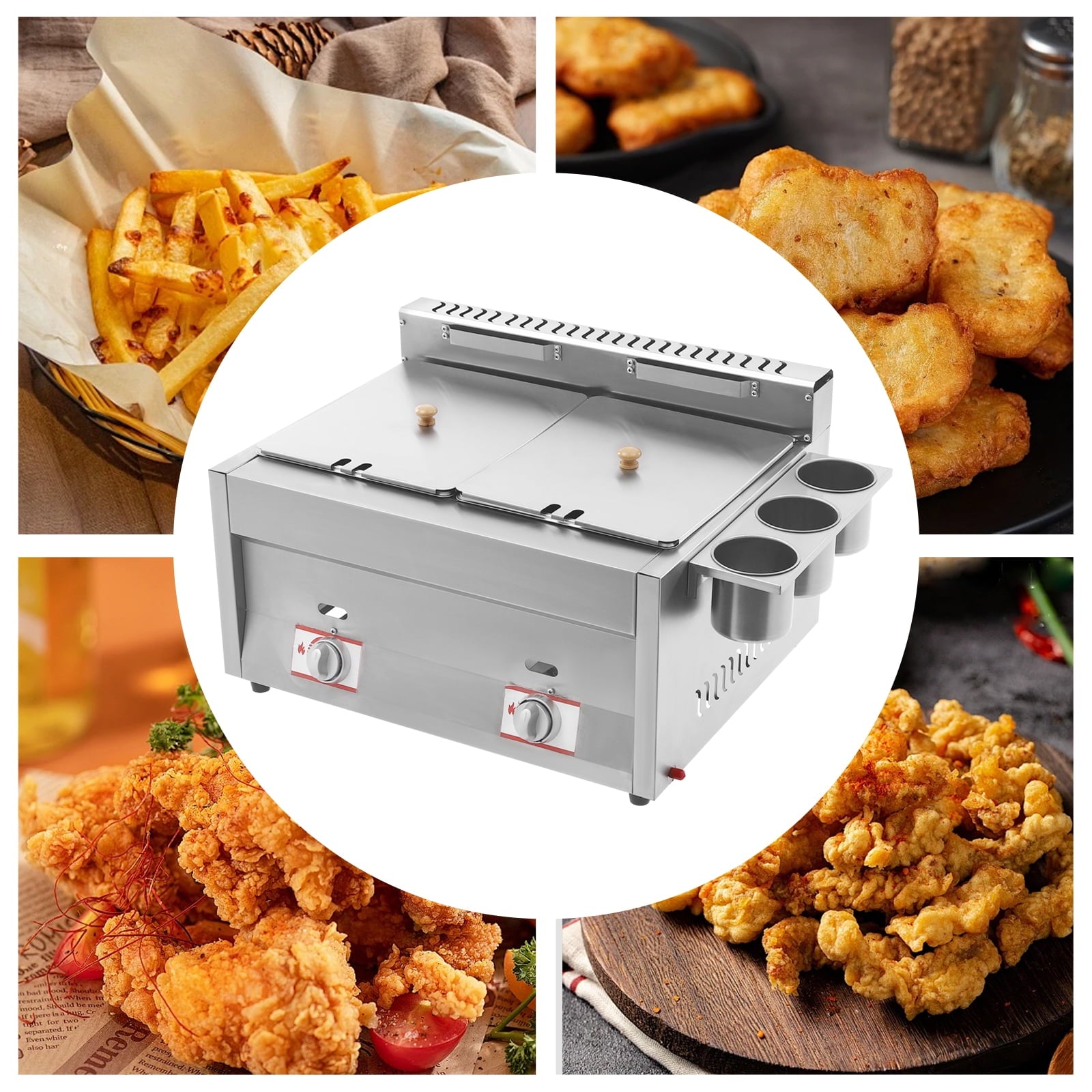 Deep Fryer with Basket and Lid Adjustable Commercial Deep Fryer Counter-top Commercial Dual Tank Kitchen Fat Fryer