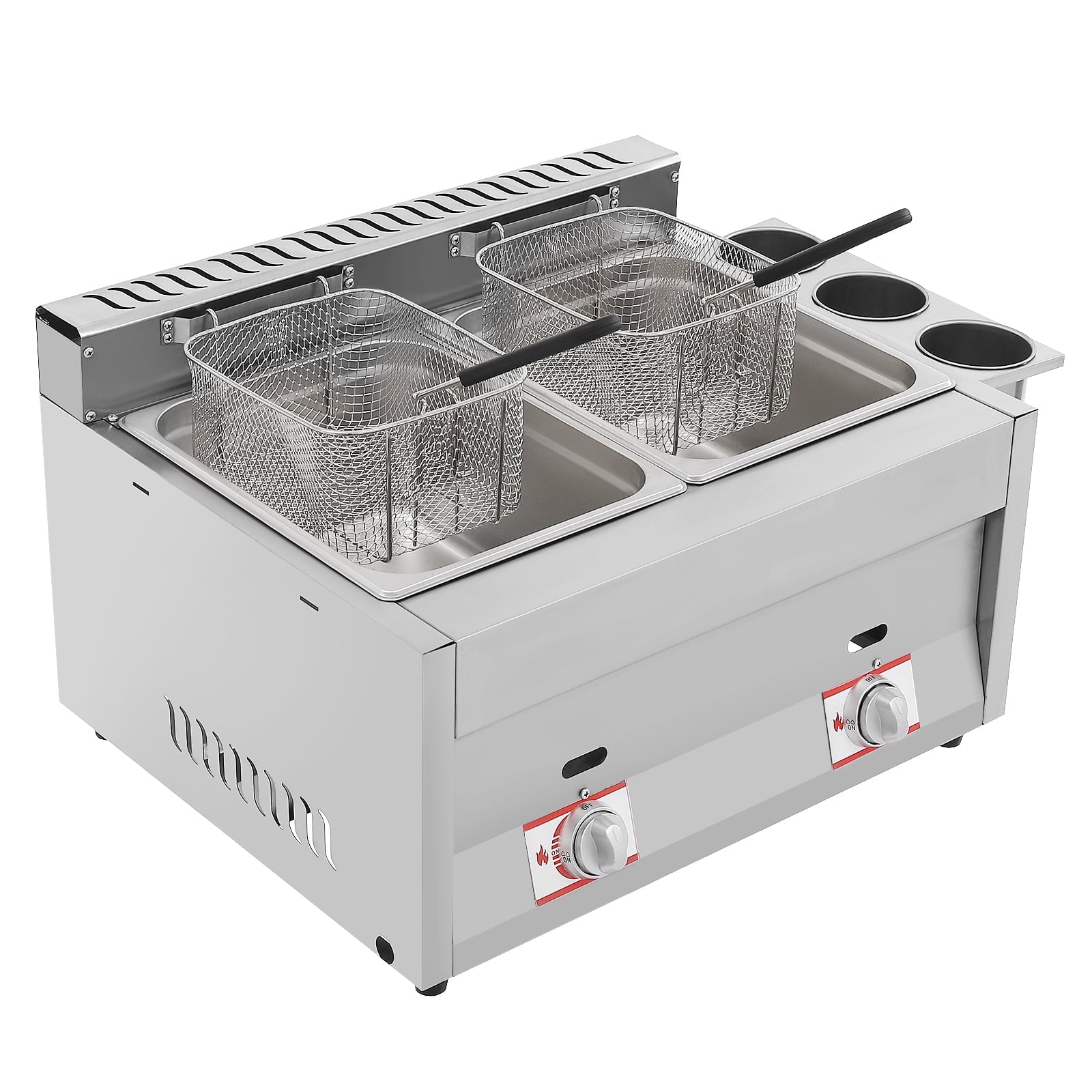 Dual Tank Gas Deep Fryer – High-Quality Stainless Steel with Independent Heating Controls, Safe and Efficient, Perfect for Frying Different Foods Simultaneously
