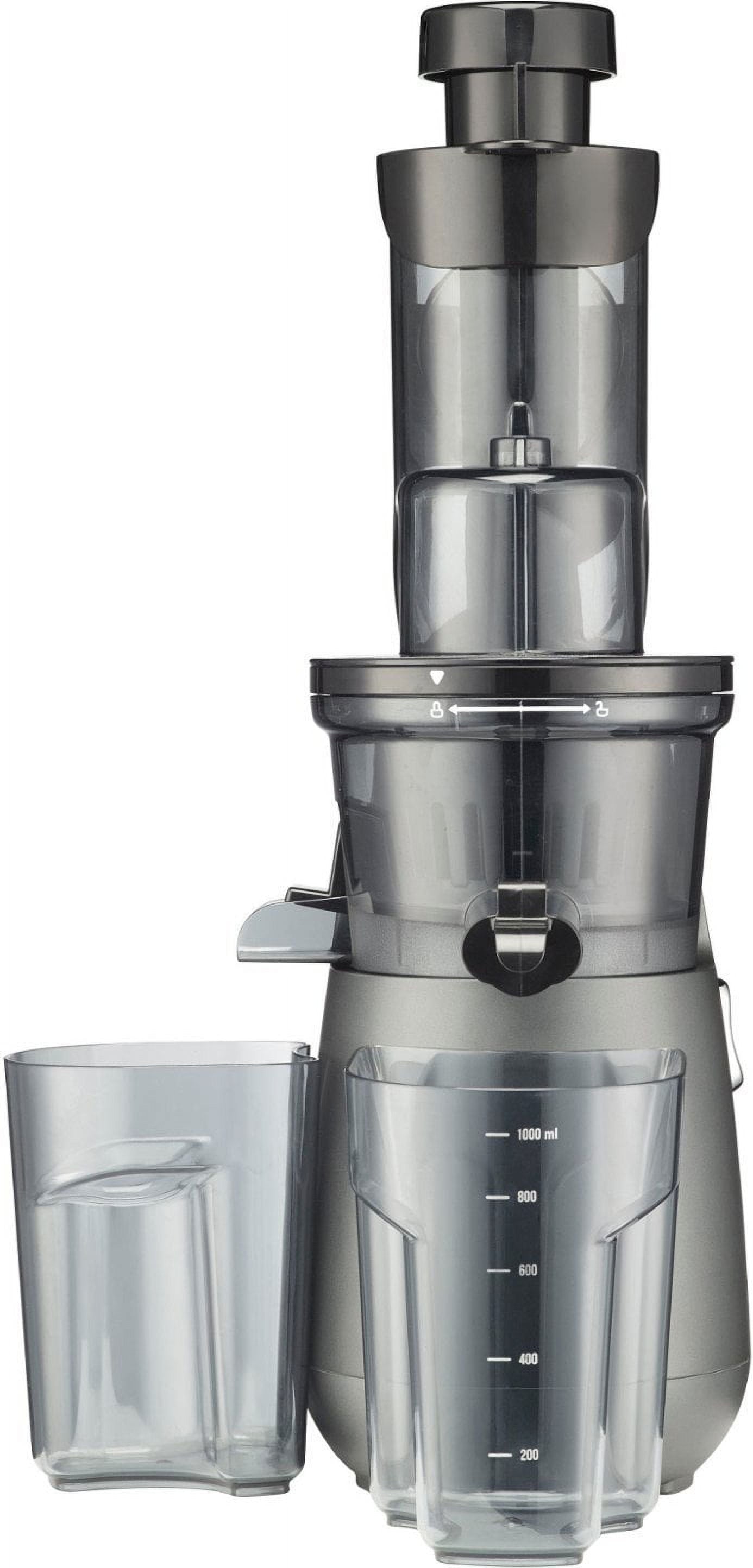 Crafting a wide range of fresh, healthy, homemade juice beverages is easy with the Slow Juicer. Engineered to powerfully press and crush fruits and vegetables for maximum juice extraction, this kitchen essential is a must for wellness-minded home chefs. The masticating auger produces less heat to retain the full flavor and nutrients of food. The auger ensures every bit of juice is extracted, while pulp is ejected into its own pitcher. Add variety and quickly yet thoroughly extract the essence of nuts, wheat grasses, sprouts, and more. This ultra-versatile unit lets you create an endless array of nutritious and delicious beverage options, from pressed juices to alternative milks to refreshing tonics and spritzers. The mesh-free filter is easily cleaned under the tap, and the powerful motor operates with quiet efficiency.