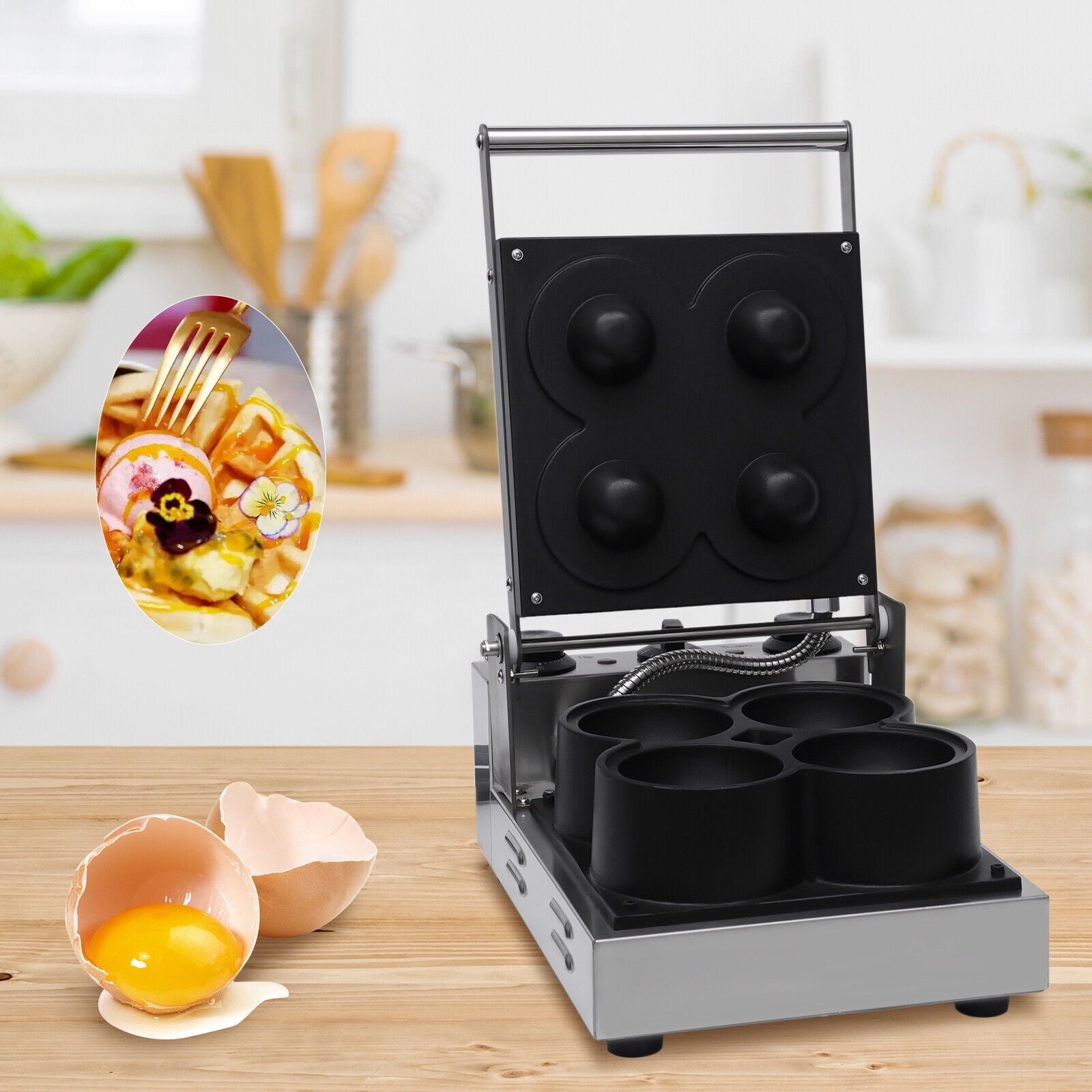 Do you want to make sweet and delicious waffles that can hold desserts? Do you want to add attraction to your dessert store? Then please do not miss this waffle maker. With this easy-to-use and easy-to-clean waffle maker, you can easily make delicious bowl-shaped waffles.