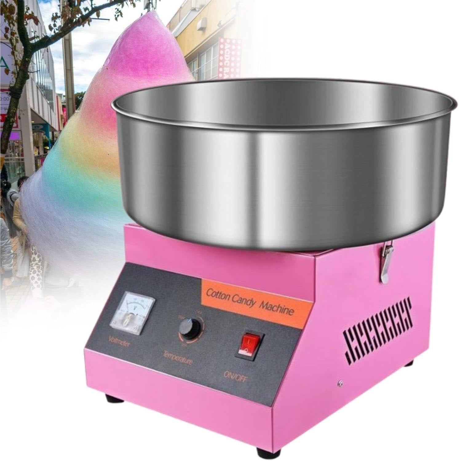 - Precise Temperature ControlA temperature control knob and a voltage meter are included with our cotton candy maker. You may simply change the temperature from 176°F to 194°F by adjusting the voltage. You really need this if you want to test different candy flavors.