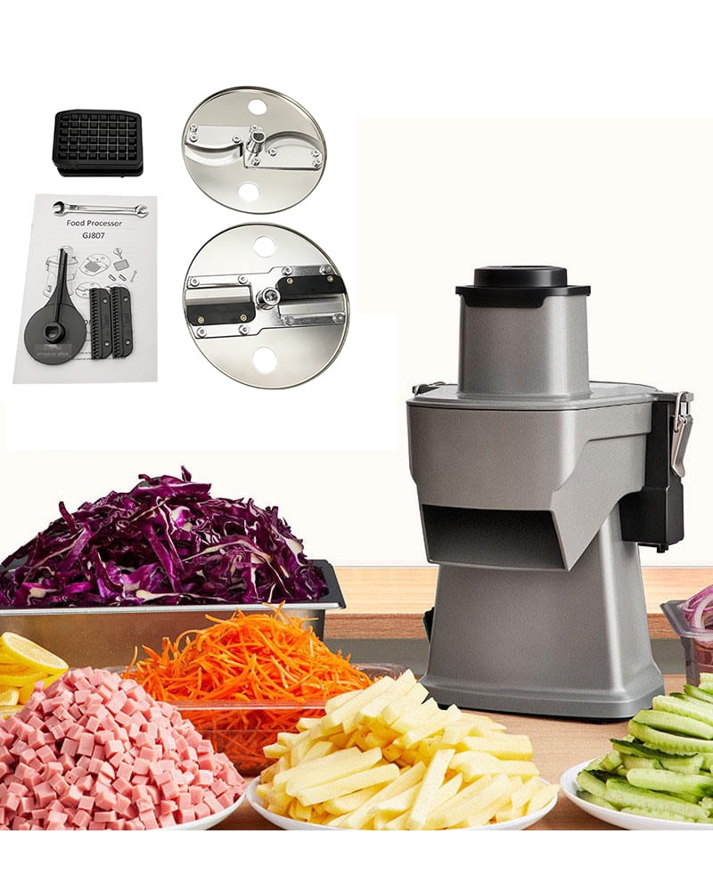 The vegetable and fruit cutter can slice, dice and shred, and comes with a variety of molds, which can cut a variety of vegetables and fruits. This machine adopts aluminum alloy shaft, high hardness, strong and durable; Pure copper motor running noise is small, strong power; All aluminum material, longer service life. Widely used in canteens, restaurants, restaurants, food processing plants and other places.