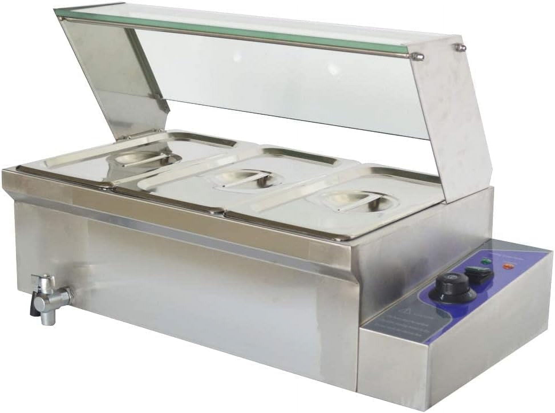 EQCOTWEA 3 Pot Bain-Marie Buffet Steam Heater Food Warmer with Glass Shield 6" Deep