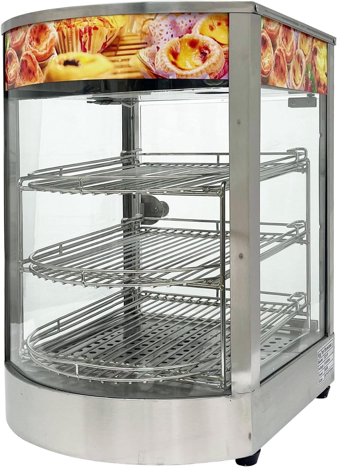 - This large capacity egg tart food display cabinet is designed with three layers. Three-layer food display rack can be disassembled for easier cleaning. There is a tray at the bottom of the food incubator to catch the food residue.