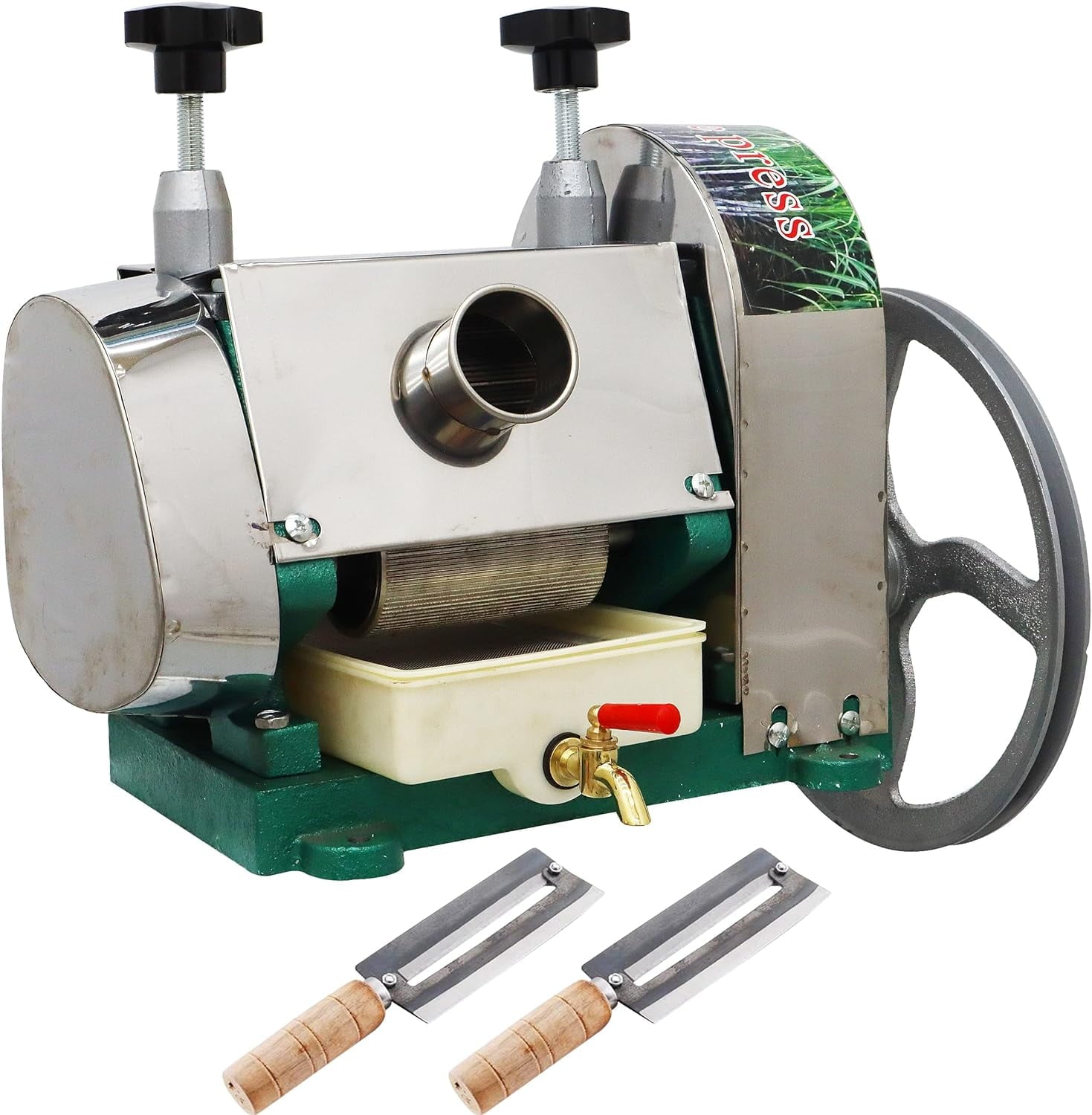 EQCOTWEA Suger Cane Press Juicer Sugarcane Ginger Sorghu Squeezer Stainless Steel 3 Rollers with 2 Knives
