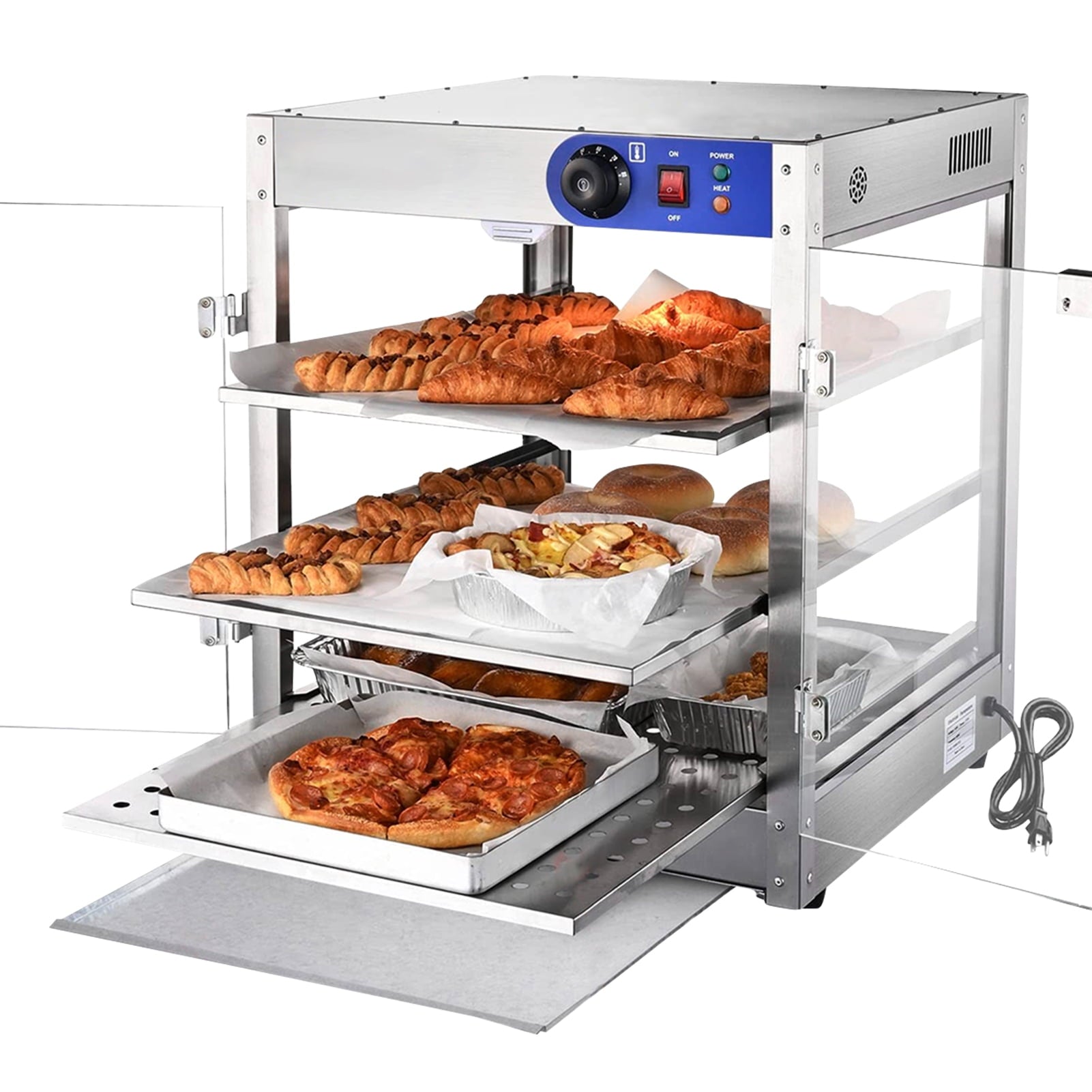 Food Pizza Warmer | 3-Tier Electric Food Warmer with Lighting | Transparent Large Capacity Countertop Case with Removable Shelves, Built-in 25W Bulb for Cafes, Bakeries, Burgers, Pizza