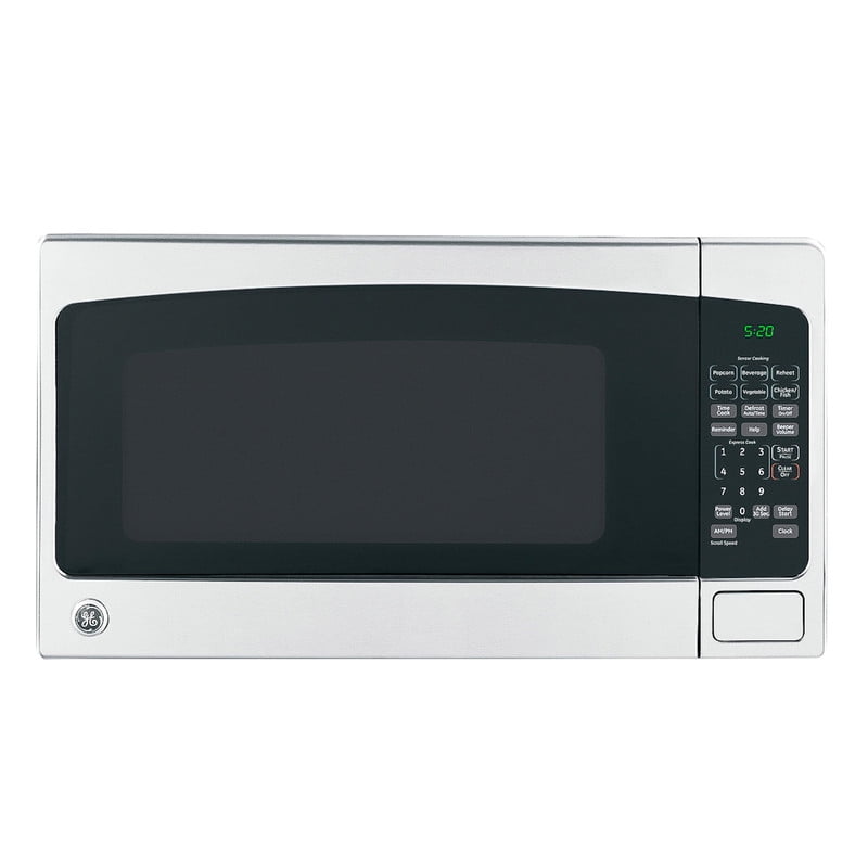 GE 2.0 cu ft 1200-Watt Countertop Microwave with Sensor Cooking & 16" Turntable, Black Stainless Steel, Push Button Door, One-Touch Presets