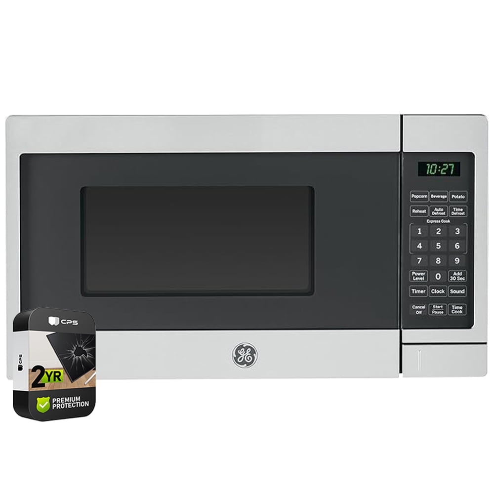 GE GCST07N1WSS Countertop Microwave Oven 700-watt Compact 0.7 Cu Ft Stainless Steel Bundle with 2 YR CPS Enhanced Protection Pack