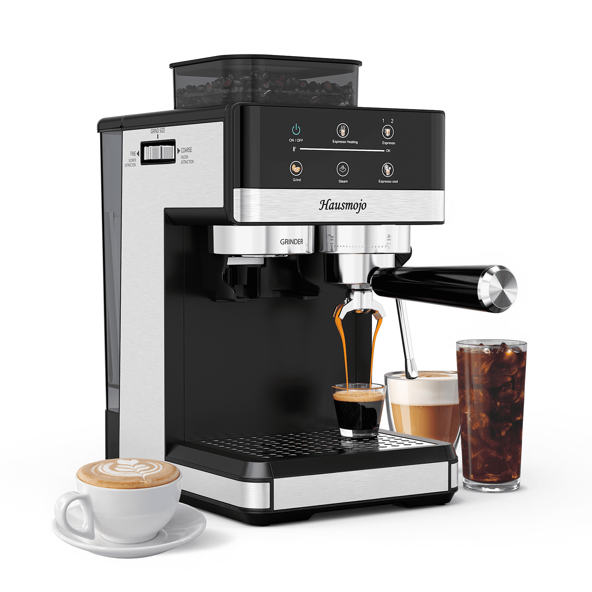 - Versatile Coffee Maker-Hot Espresso or Iced Lattes On Demand: Your espresso and coffee machine brews without limits. Enjoy hot espresso on chilly mornings or refreshing iced lattes in summer (just brew over ice!). Hausmojo adapts to your cravings, season after season.