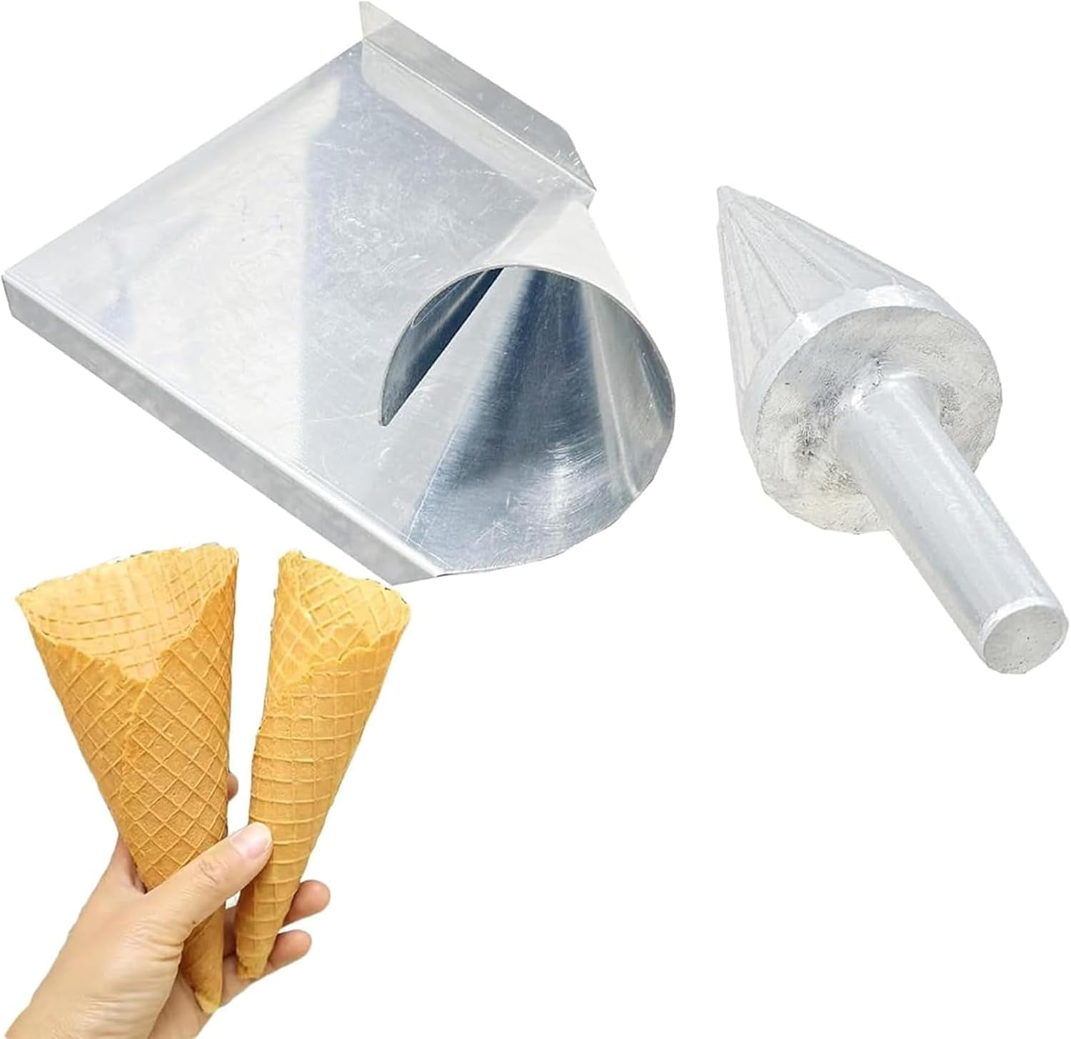 Ice Cream Waffle Cone Roller, Waffle Cone Shaper Tool, Ice Cream Cone Roller Mould, Cast Aluminum Body, Clear Texture and Smooth Surface, for Restaurant, Home Kitchen, Bakeries