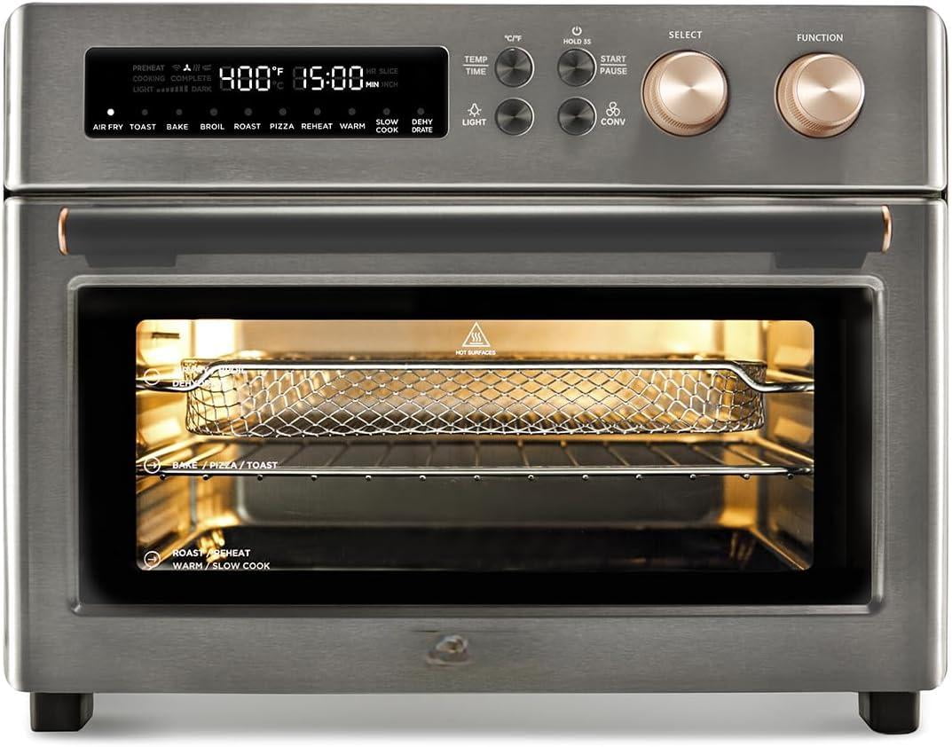- [CRUNCHY and HEALTHY COOKING EXPERIENCE]Our Air Fry feature is a healthier alternative to traditional frying, reducing fat by up to 75%. Enjoy all your favorite foods guilt-free, including deep-fried favorites like fries. With intensive and efficient infrared heating combined with true convection, our air fryer toaster oven delivers perfectly crispy and golden results every time. This delivers an exquisite blend of texture and flavor, ensuring a superb culinary experience.