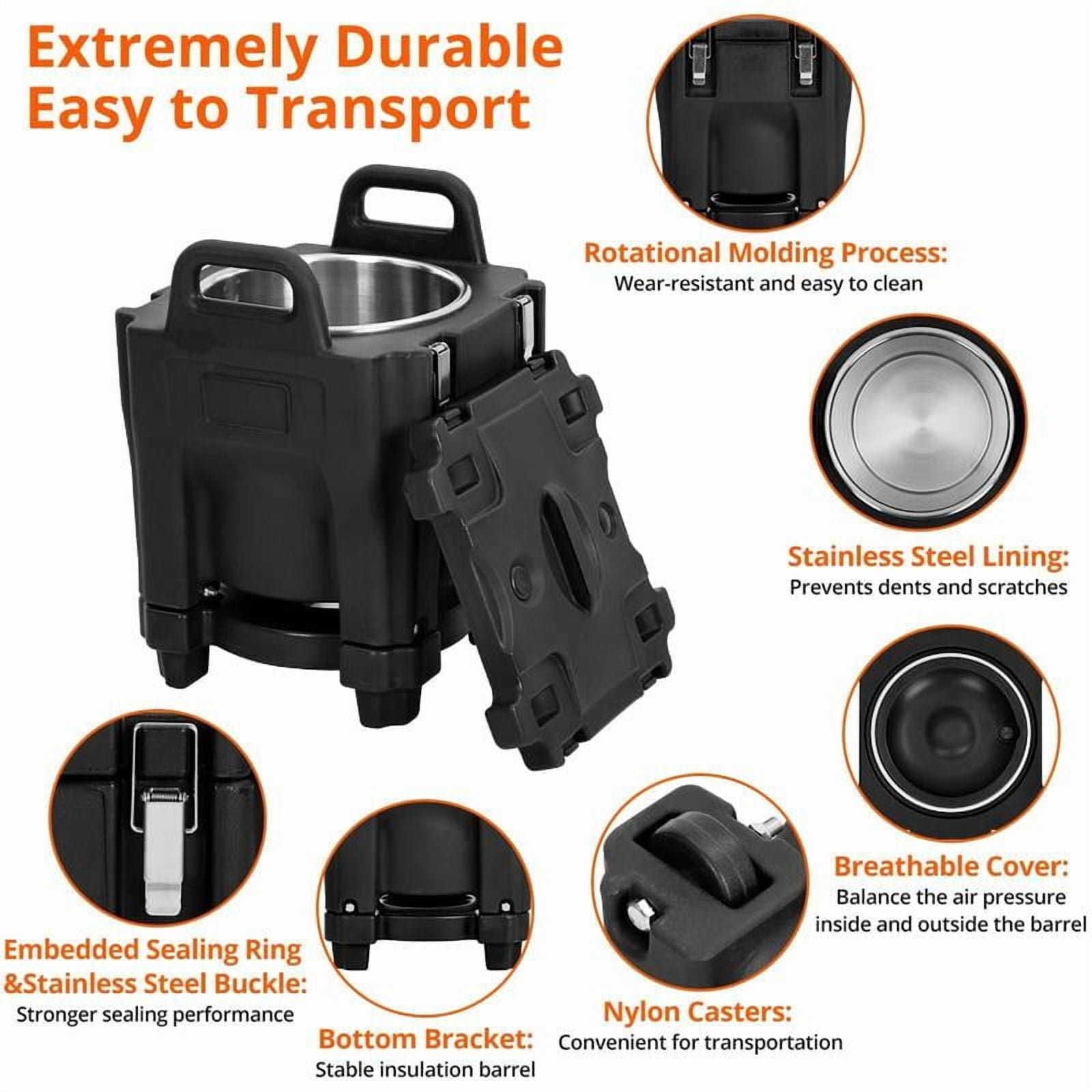Professional-grade insulated food carrier for all your catering needs GARVEE Insulated Food Pan Carrier: Professional Food Transport Solution Experience superior food transportation with our premium insulated carrier, designed for professional caterers and food service professionals who demand the best in temperature retention and durability. Why Choose GARVEE? Premium Construction High-quality stainless steel liner ensures excellent temperature retention and easy cleaning. Enhanced Security Featuring two snap lock clasps for secure closure and safe transport of your valuable food items. Convenient Mobility Ergonomic handles and wheels make transportation effortless, even when fully loaded. Large capacity design perfect for commercial and residential use Features That Deliver With its generous 20L capacity and robust design, this food pan carrier is engineered to meet the demands of professional catering while ensuring your food stays at the perfect temperature. Superior insulation for extended temperature retention Professional Grade Quality The GARVEE Insulated Food Pan Carrier combines durability with functionality, featuring a premium stainless steel liner and secure locking system for safe and reliable food transportation. Key Features Ergonomic handles for easy transport High-quality stainless steel liner Two snap lock clasps for security Includes durable spoon and base Robust design, large 20L capacity Wheels for easy mobility Perfect for catering and commercial use Specifications Brand : GARVEE Color : Brown Material : Stainless Steel Capacity : 20L Product Dimensions : 16.34 x 16.34 x 22.44 inches Item Weight : 0.8 ounces Package Includes : 1 x Food Pan Carrier, 1 x Spoon