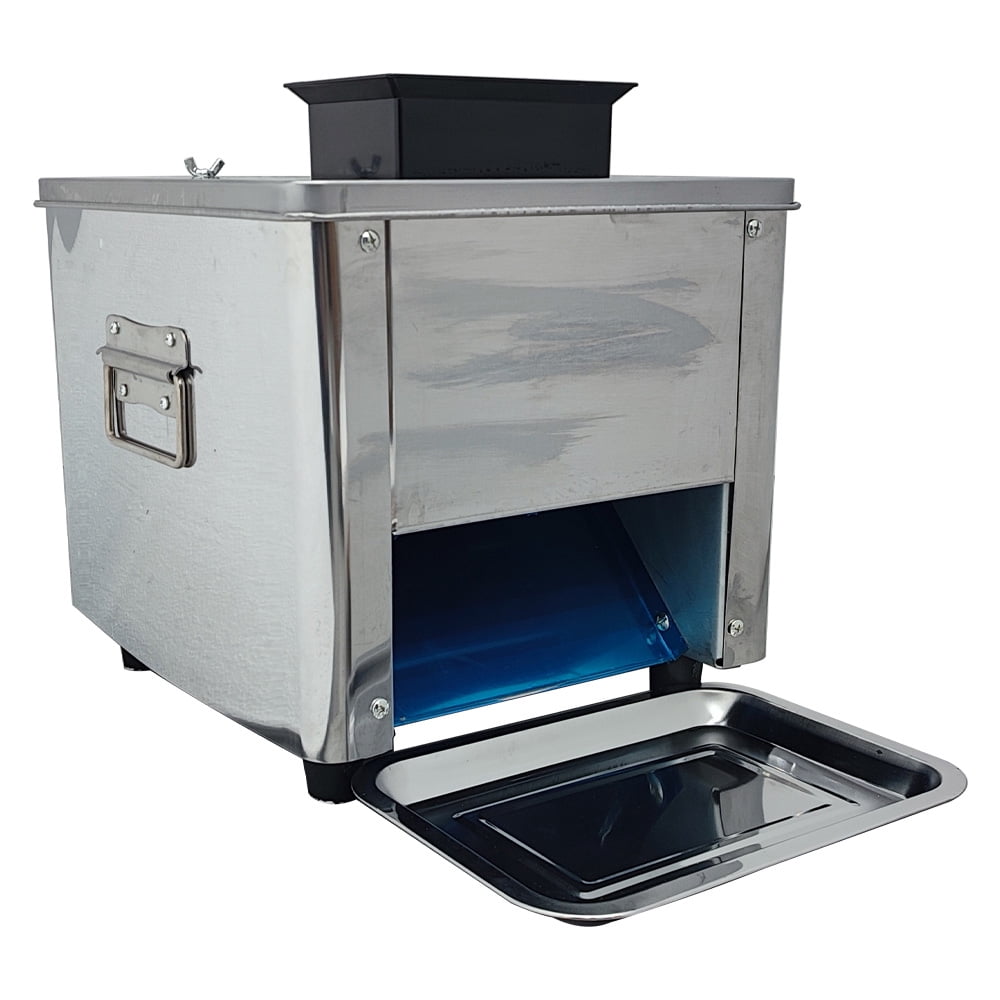 This stainless steel meat slicing machine can be cut, shred, integration design is fast and convenient, easy to clean (can use water flush the machine directly).