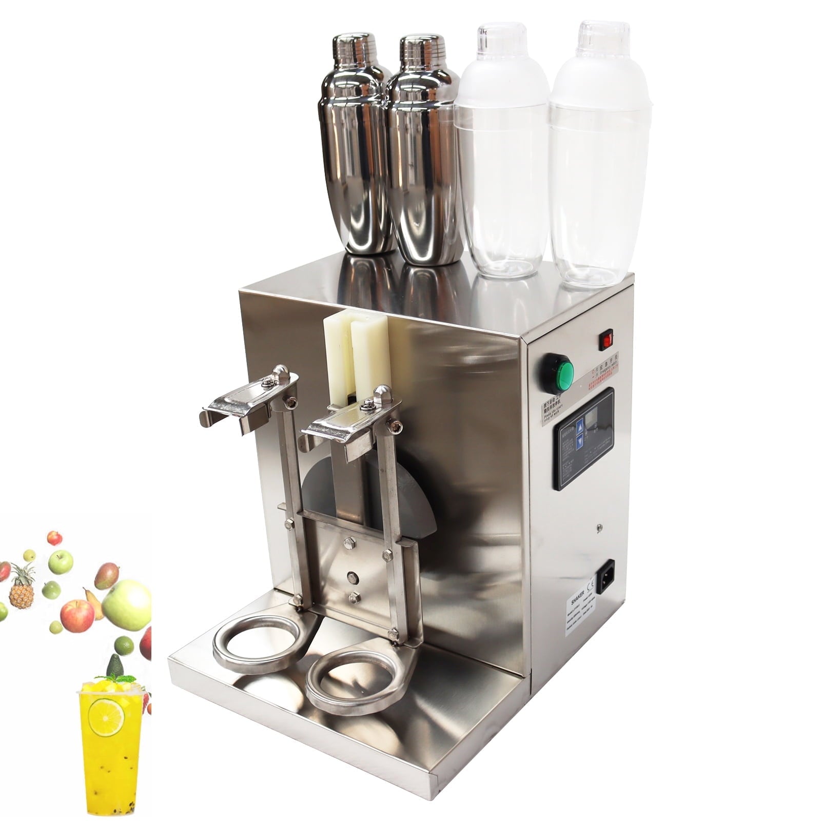 - This automatic double-cup electric milk tea shaking machine is made of stainless steel material and could replace the process of manual shaking.