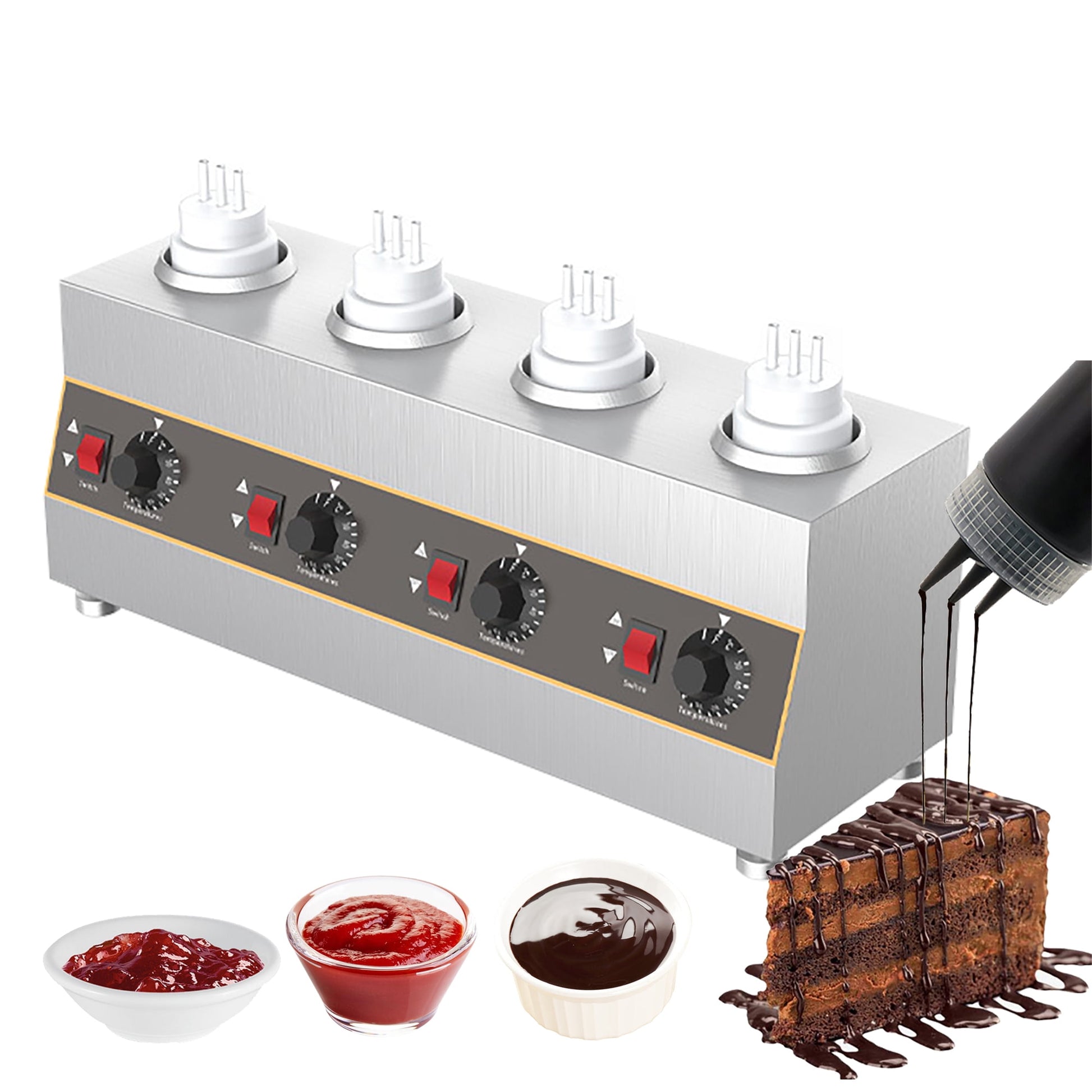 INTSUPERMAI Electric Sauce Warmer Jam Heat Preservation Machine with 4 Squeeze Bottles