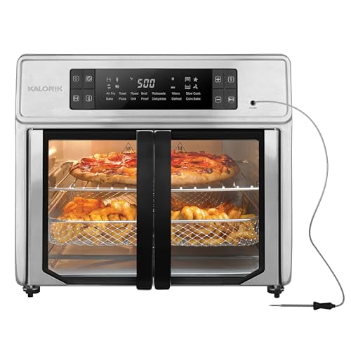 Kalorik Air Fryer Oven MAXX Advance Series 26-Quart with Digital Controls Easy-View Door and 14 Smart Cooking Presets, Includes 9 Cooking Accessories & Smart Probe, 1700-Watts, Black